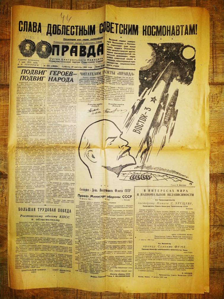 Подборка из 18ти газет 1961-62гг по космосу,Гагарин и другие боецъ - 21 янв 2022 09:14.28 × Мини профиль пользователя боецъ Сообщения: 2838 Зарегистрирован: 03 фев 2006 10:30.22 Откуда: Московская область Статус: Не в сети - 21 янв 2022 09:14.28 #6586004 еще Фото "А я знаю, что в ящиках. Там- нитки! Все спекулянты нитками торгуют!" (с)