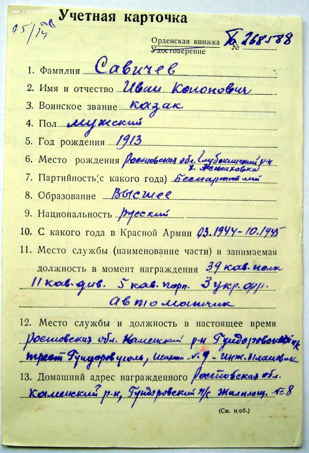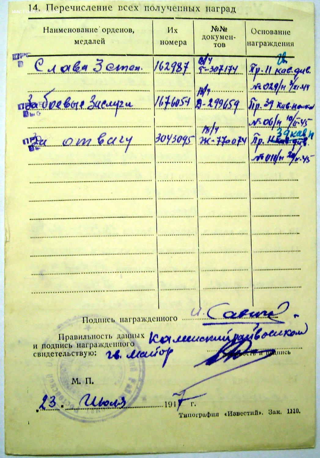 За отвагу № 3.043.095 ввинченное ухо