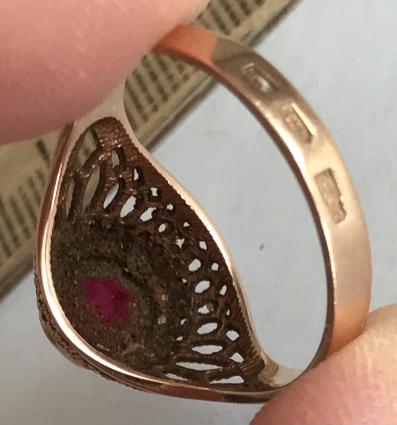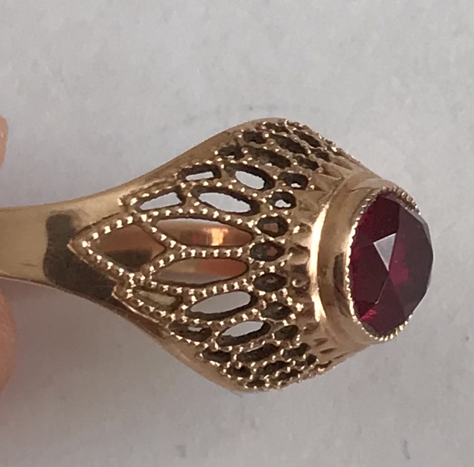 Золотое кольцо с корундом СССР. Корунд, золото 583 проба со звездой.