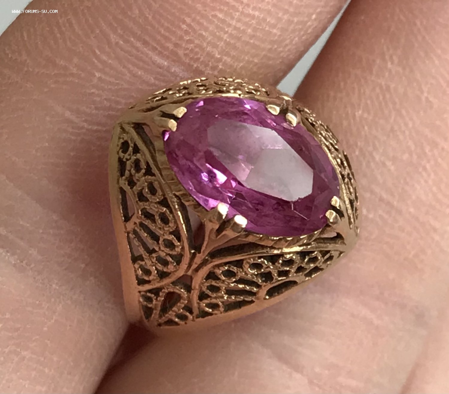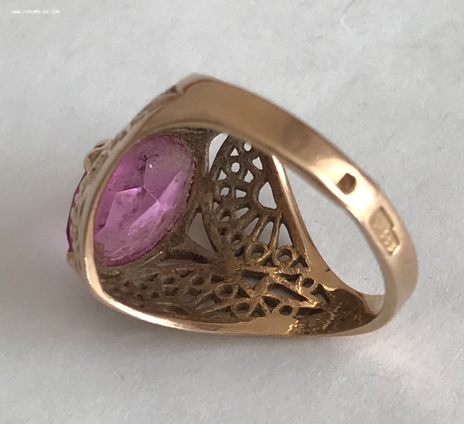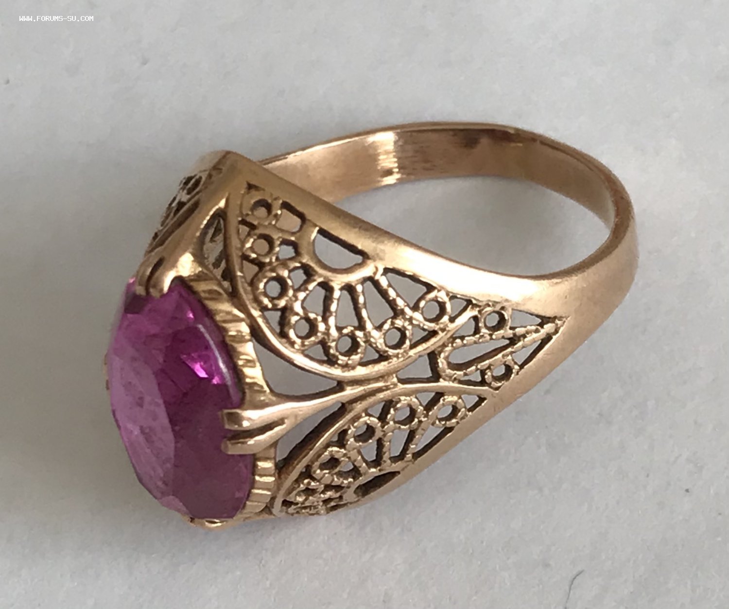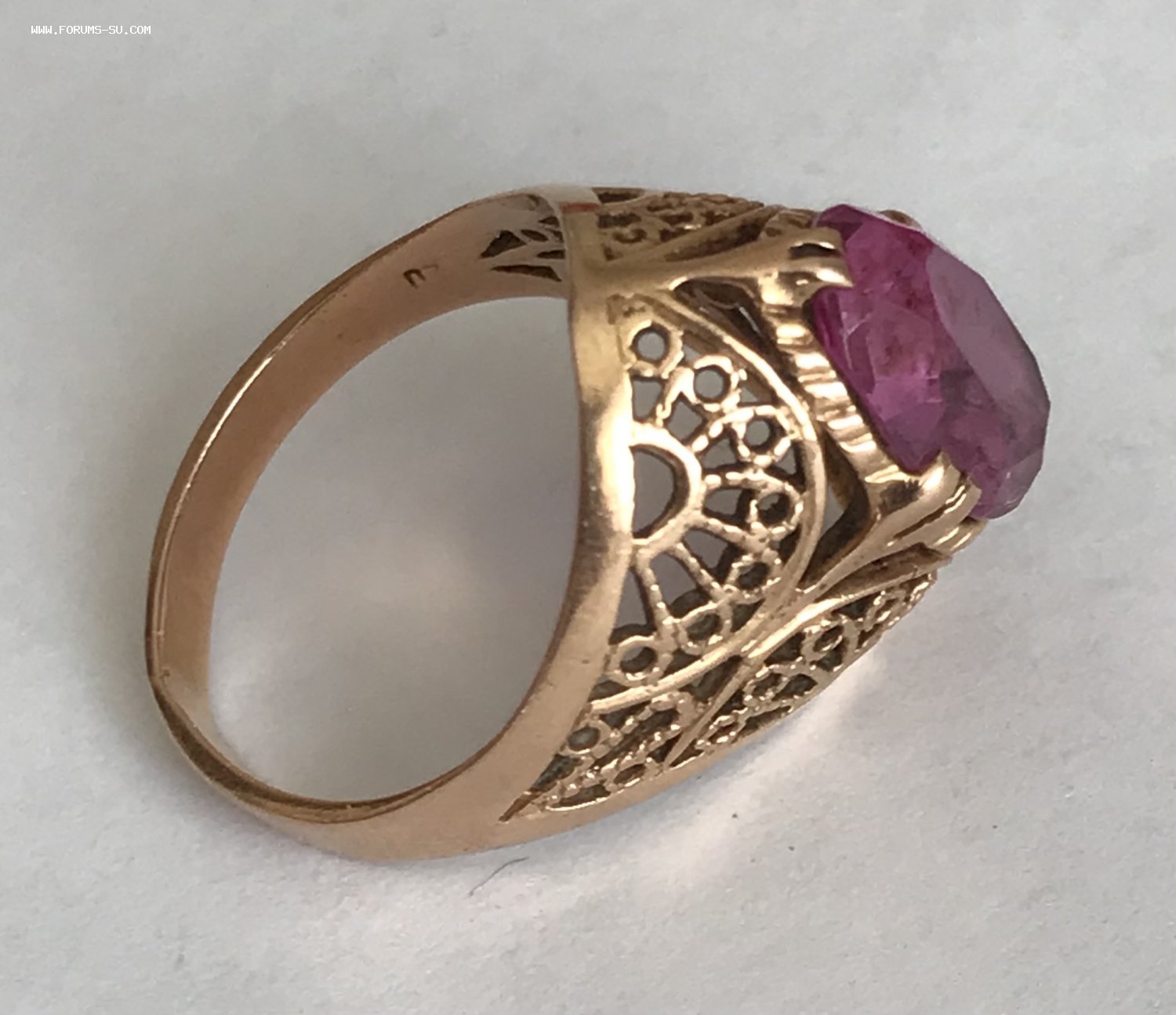Золотое кольцо с корундом СССР. Корунд, золото 583 проба со звездой.