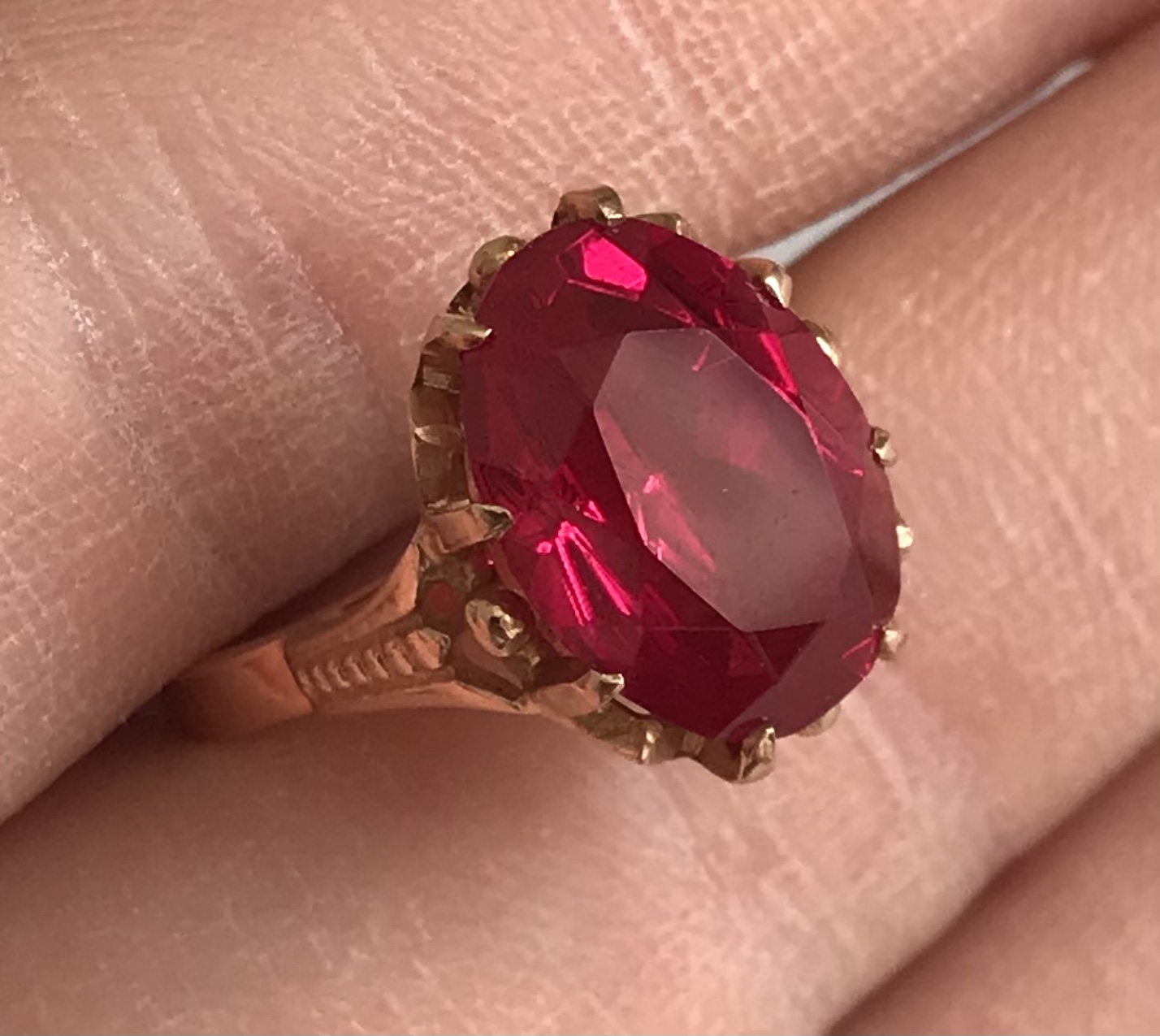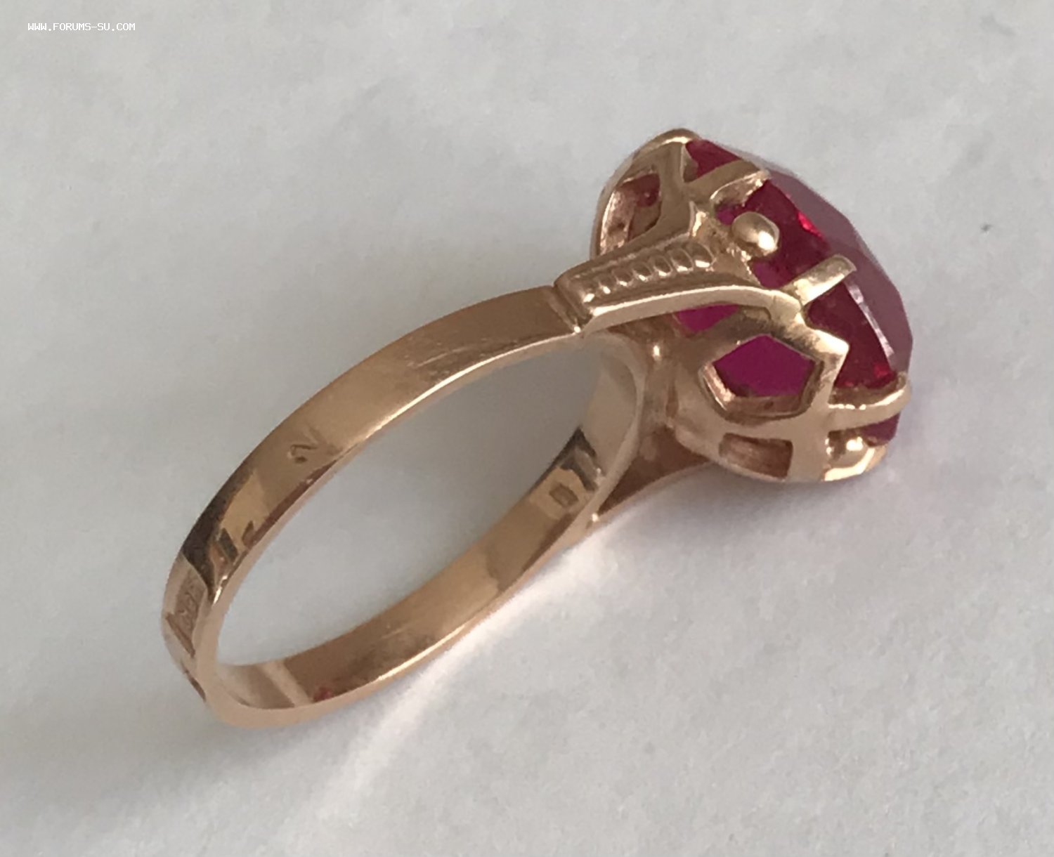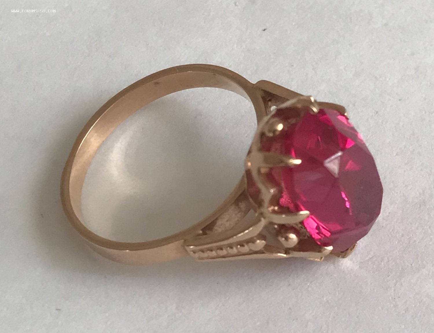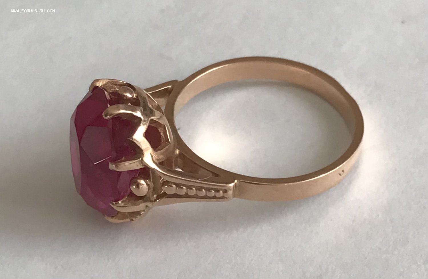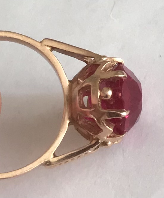 Золотое кольцо с корундом СССР. Корунд, золото 583 проба со звездой.