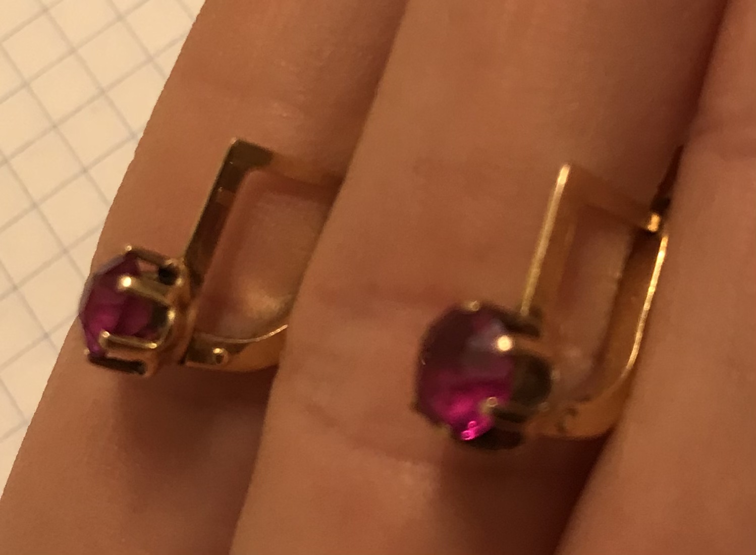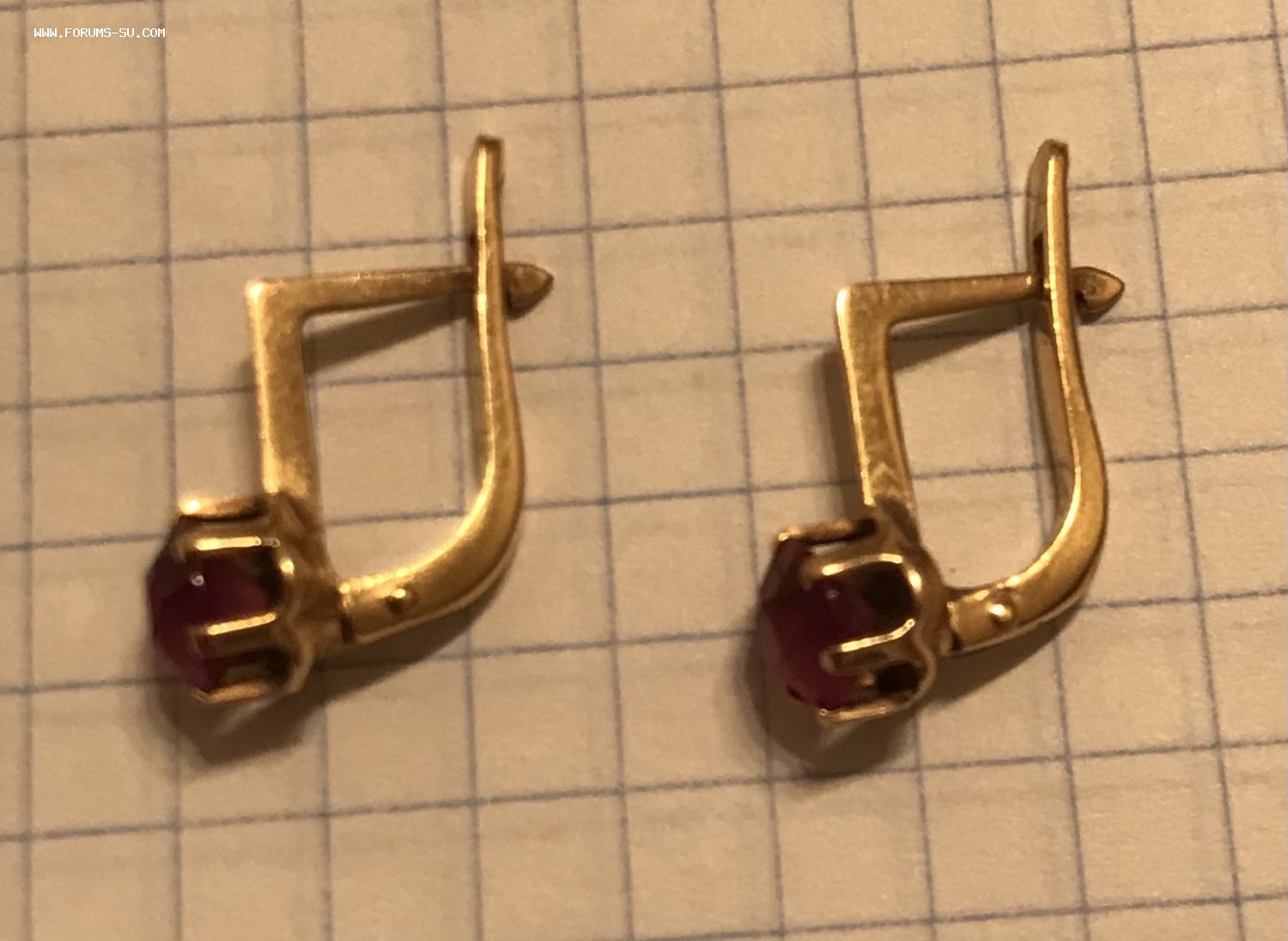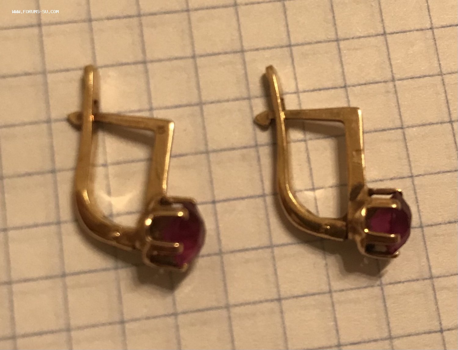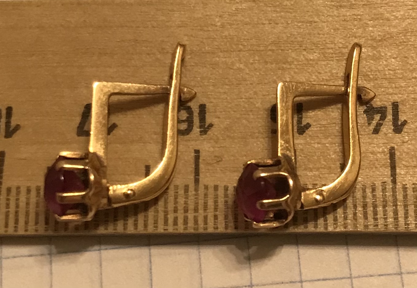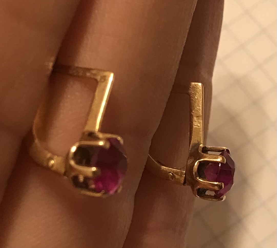 Золотые серьги с корундом СССР. Корунд, золото 583 проба со звездой.