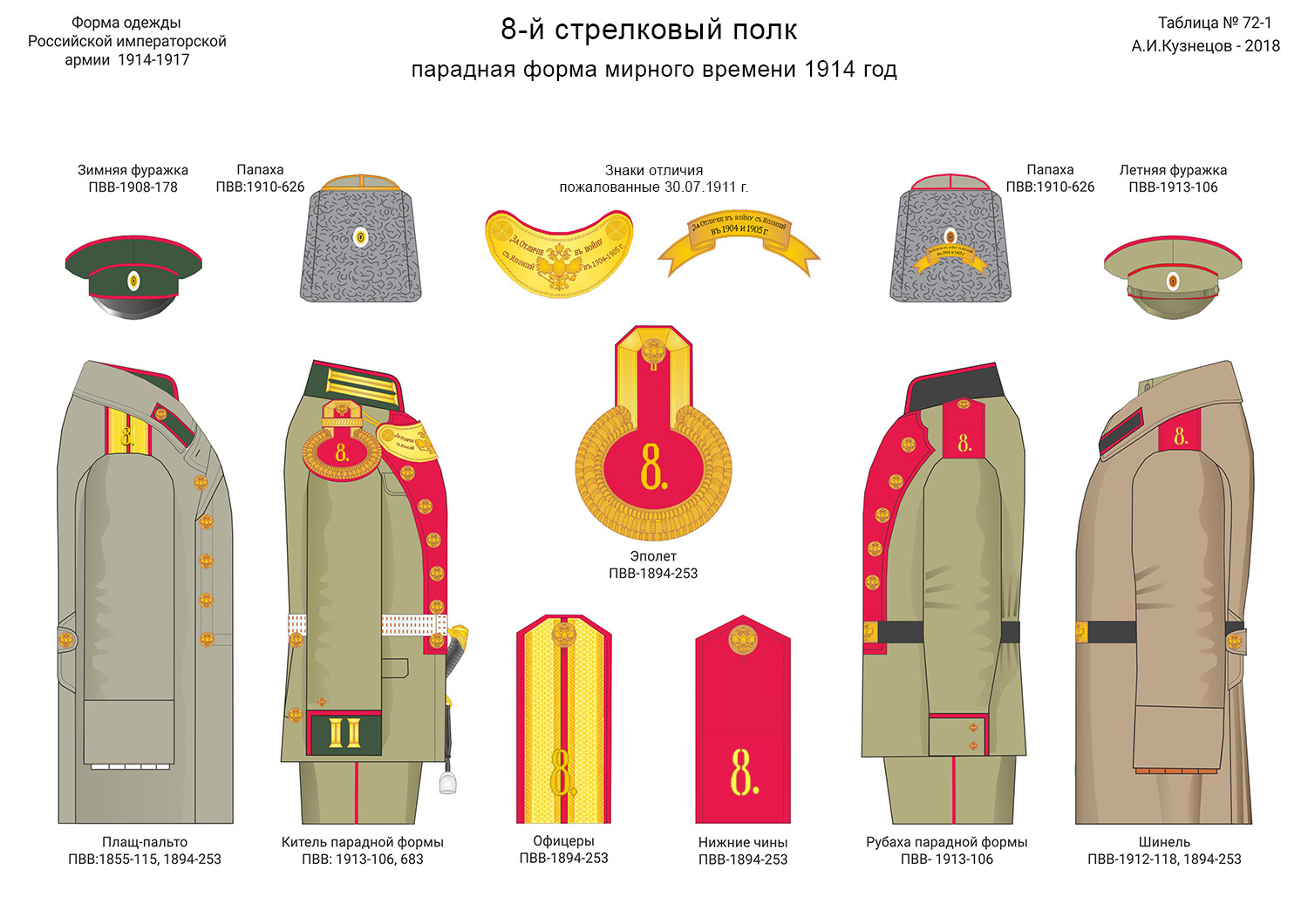 ЯРОЦКИЙ ЛЕОНТИЙ ФЕОДОТОВИЧ. СВЯЩЕННИК 8-го СТРЕЛКОВОГО ПОЛКА. 42 ГОДА. СЕМИНАРИЯ СО СТЕПЕНЬЮ СТУДЕНТА. С 1894 г. — псаломщик Варшавской епархии; 1895 г. — диакон той же епархии; 1901 г. — священник 189-го пехот. резервного Белгорайского полка; 1910 г. — за штатом с прикомандированием к 9-му саперному батальону; 1911 г. — при штабе 8-й артиллерийской бригады; дек. 1913 г. — 8-го стрелк. полка с откомандированием к 8-й артиллерийской бригаде; 1914 г. — 8-й артиллерийской бригады; 20 янв. 1915 г. — 8-го стрелк. полка. Во время войны попал в плен.