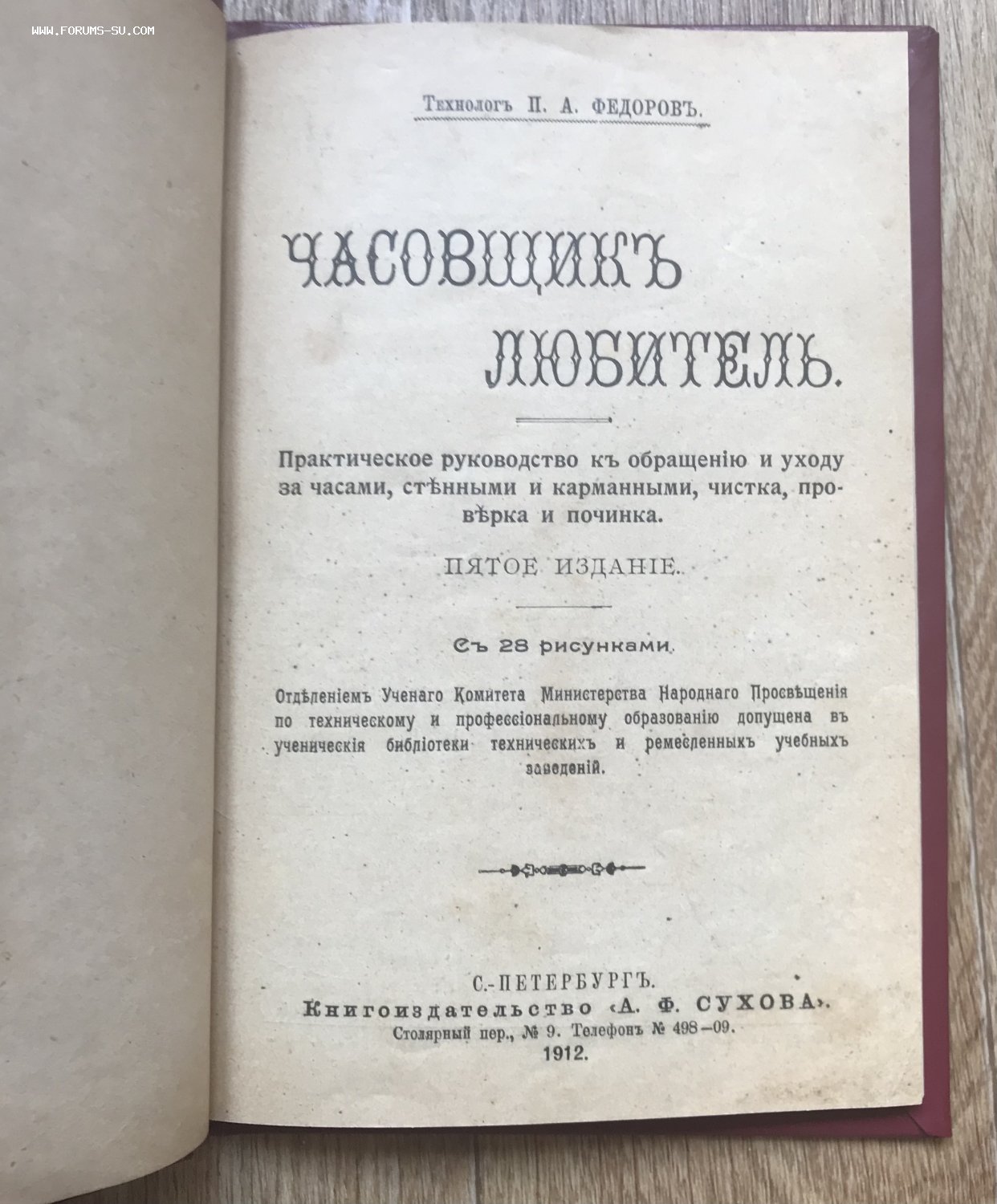 Федоров. Часовщик-любитель. СПБ, Издание Сухова, 1912 год. 60 страниц, Поздний переплёт, формат 15 х 21,5 см.