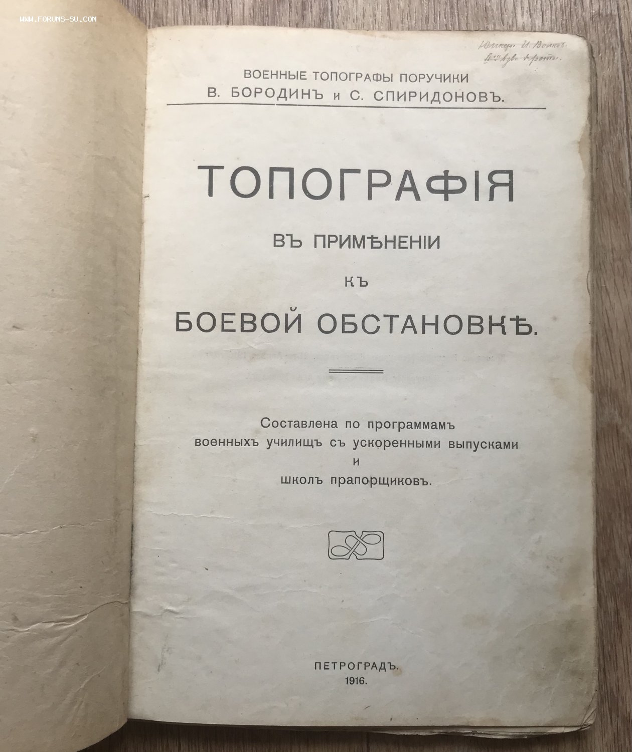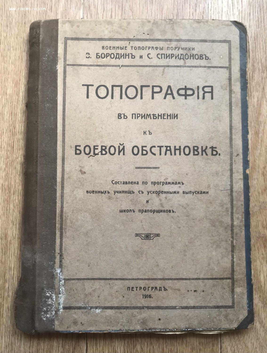 Топография в применении к боевой обстановке Военные топографы поручики Бородин и Спиридонов. Составлена по программам военных училищ с ускоренными выпусками и школ прапорщиков. Петроград, 1916.