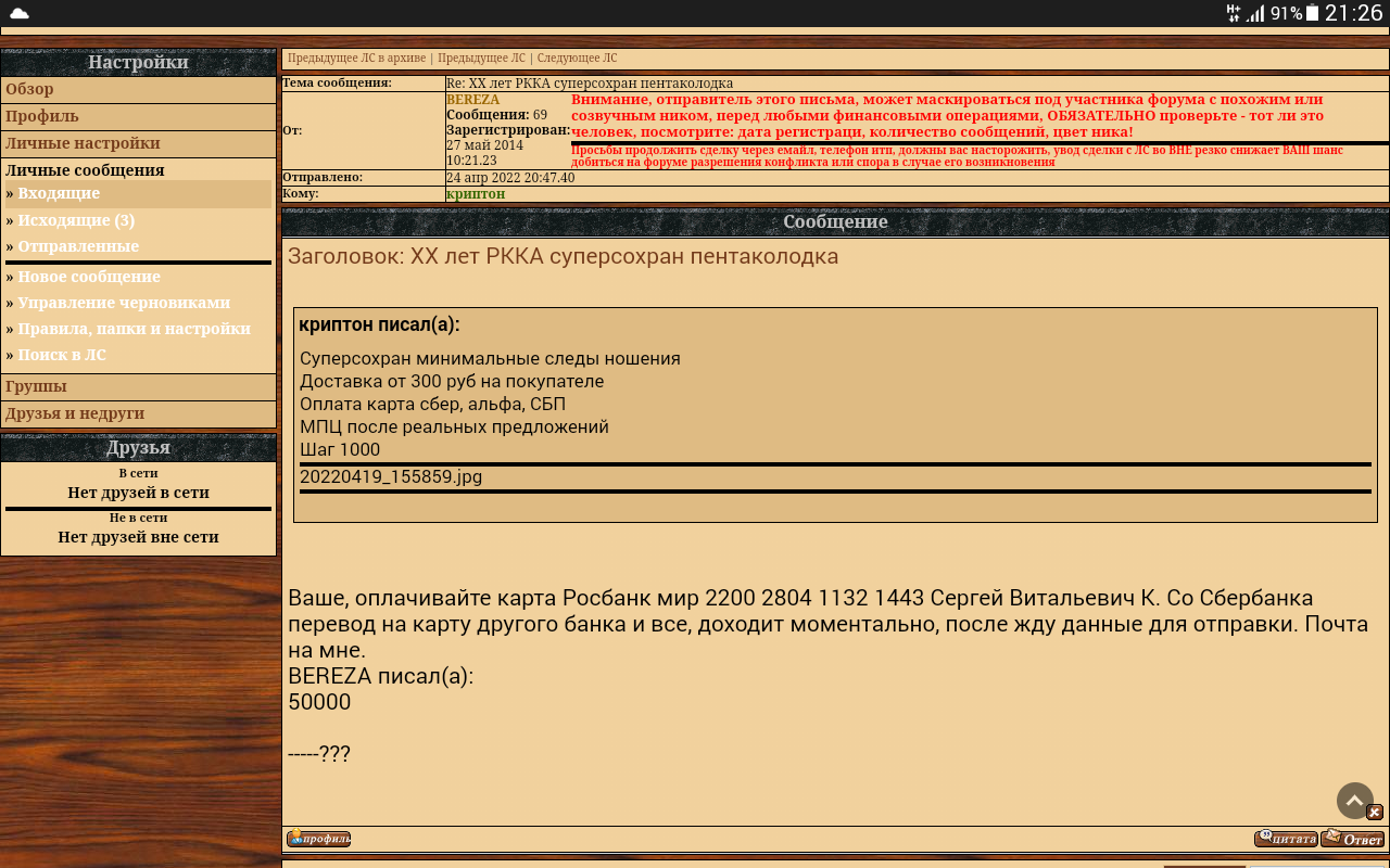 По проданной, оплаченной и отправленной медали XX лет РККА суперсохран получил вот такое удивительное письмо от коричневого ника BEREZA