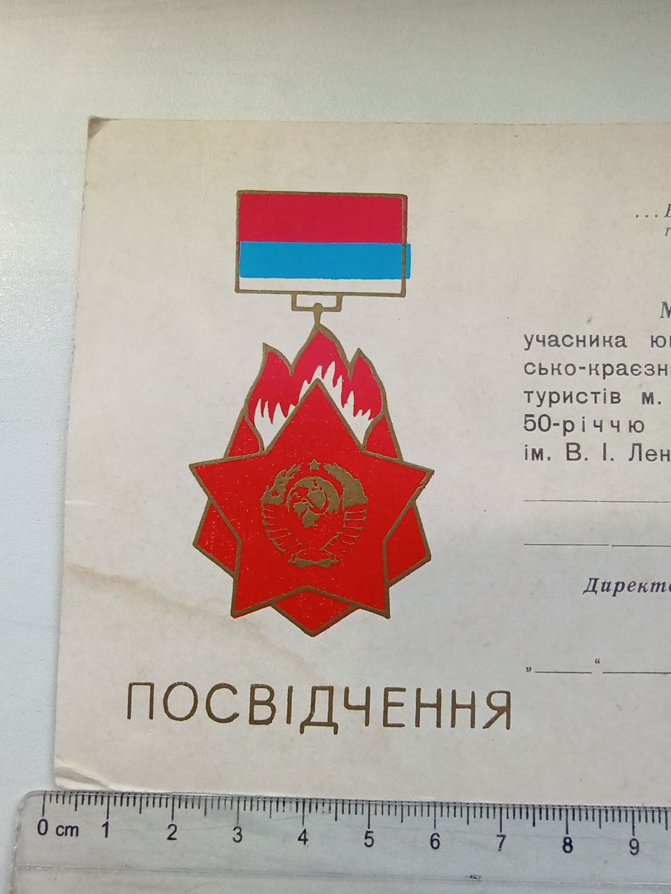 Незаполненное удостоверение к медали участника юбилейного 15 туристическо-краеведческого слета юных туристов г. Киева посвященного 50 летию пионерской организации им. В.И. Ленина