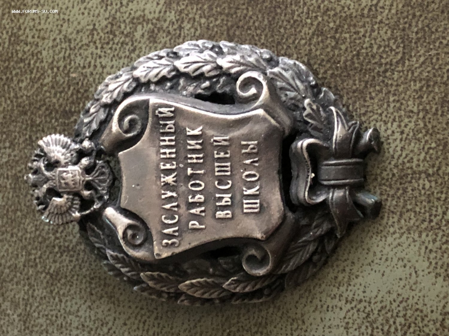 Знак Заслуженный работник высшей школы РФ, Русские Ремесла, серебро. картуш слегка деформирован.