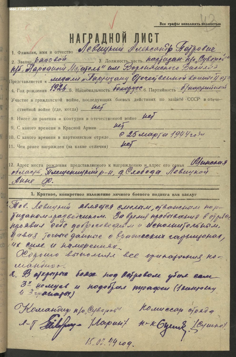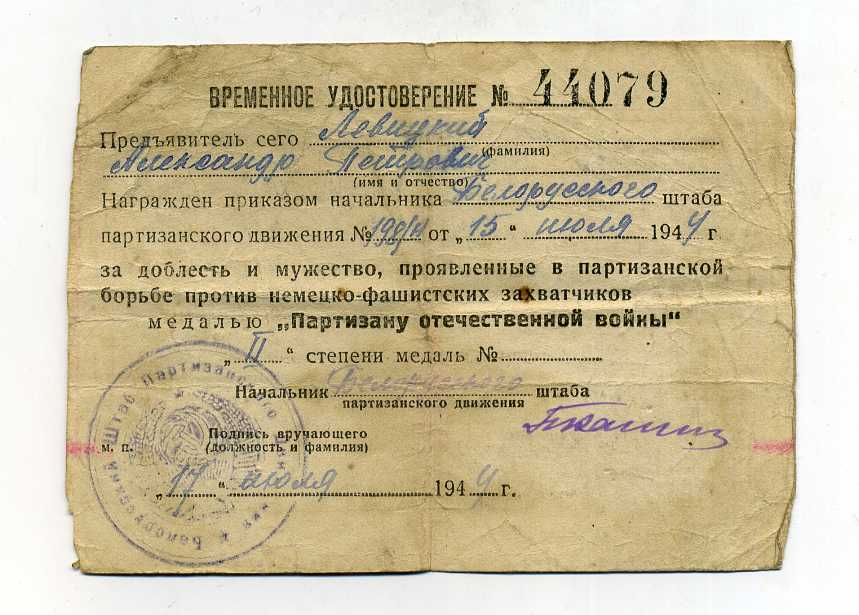 Левицкий Александр Петрович 1926 г.р.