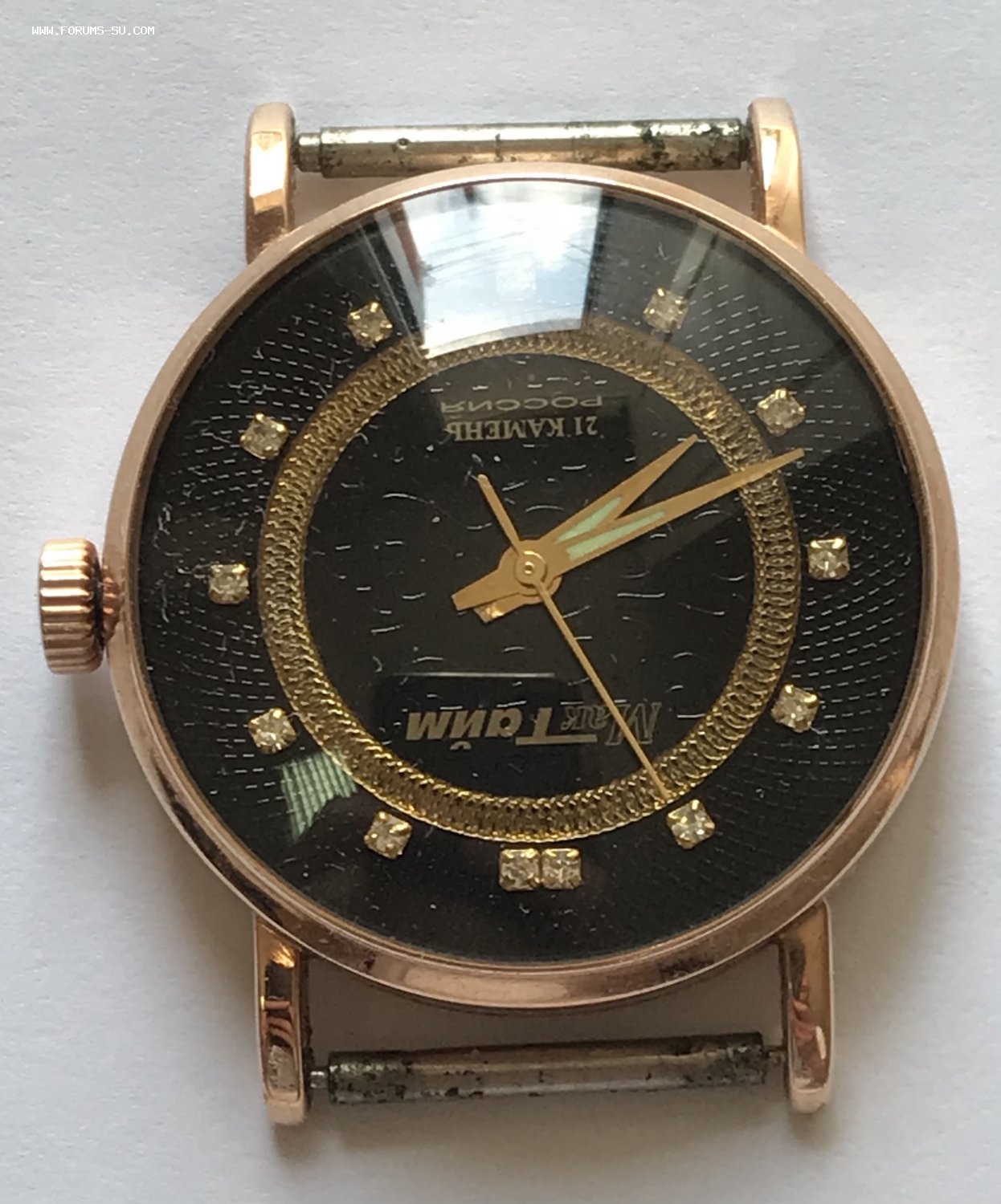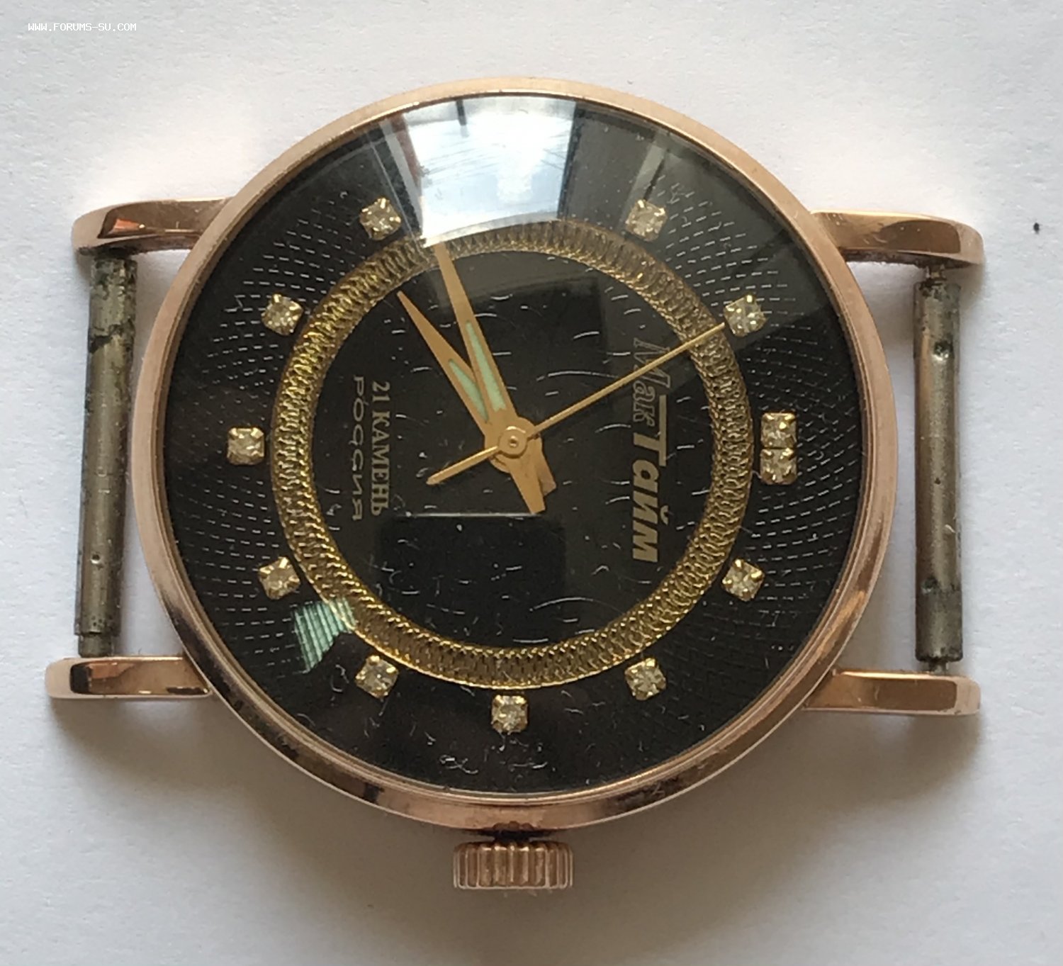 Золотые наручные мужские часы Мактайм с бриллиантами. В идеальном состоянии. Корпус из золота 585 пробы.