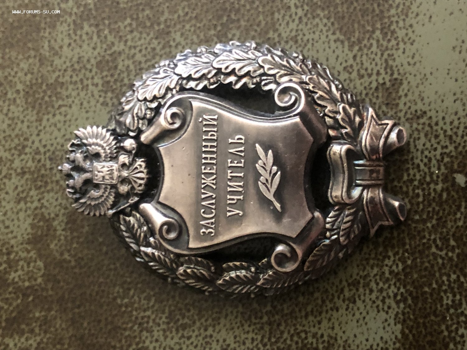 Предлагается знак Заслуженный учитель РФ, монетный двор, клеймо 2-го типа (продолговатое), серебро.