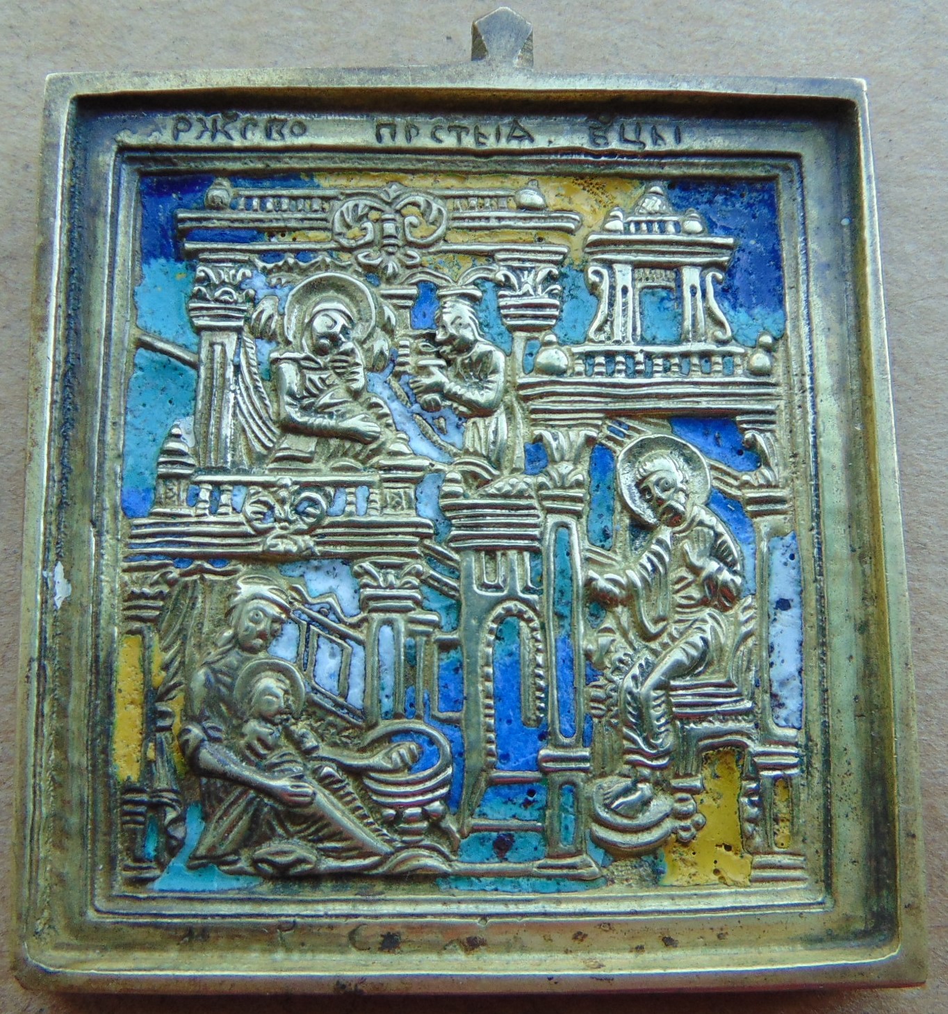 Меднолитая икона. Икона Рождество Пресвятой Богородицы.