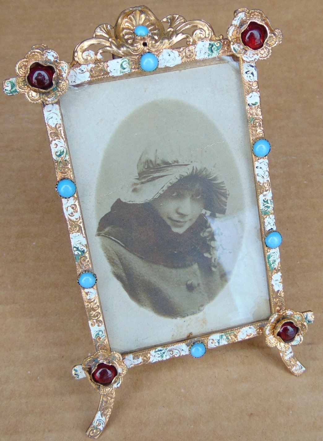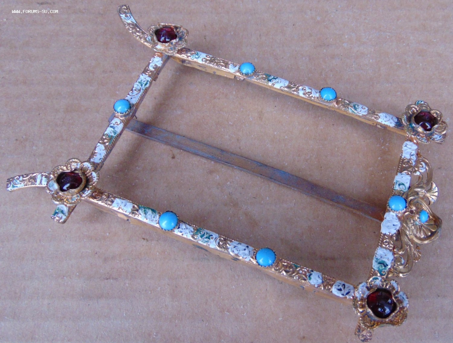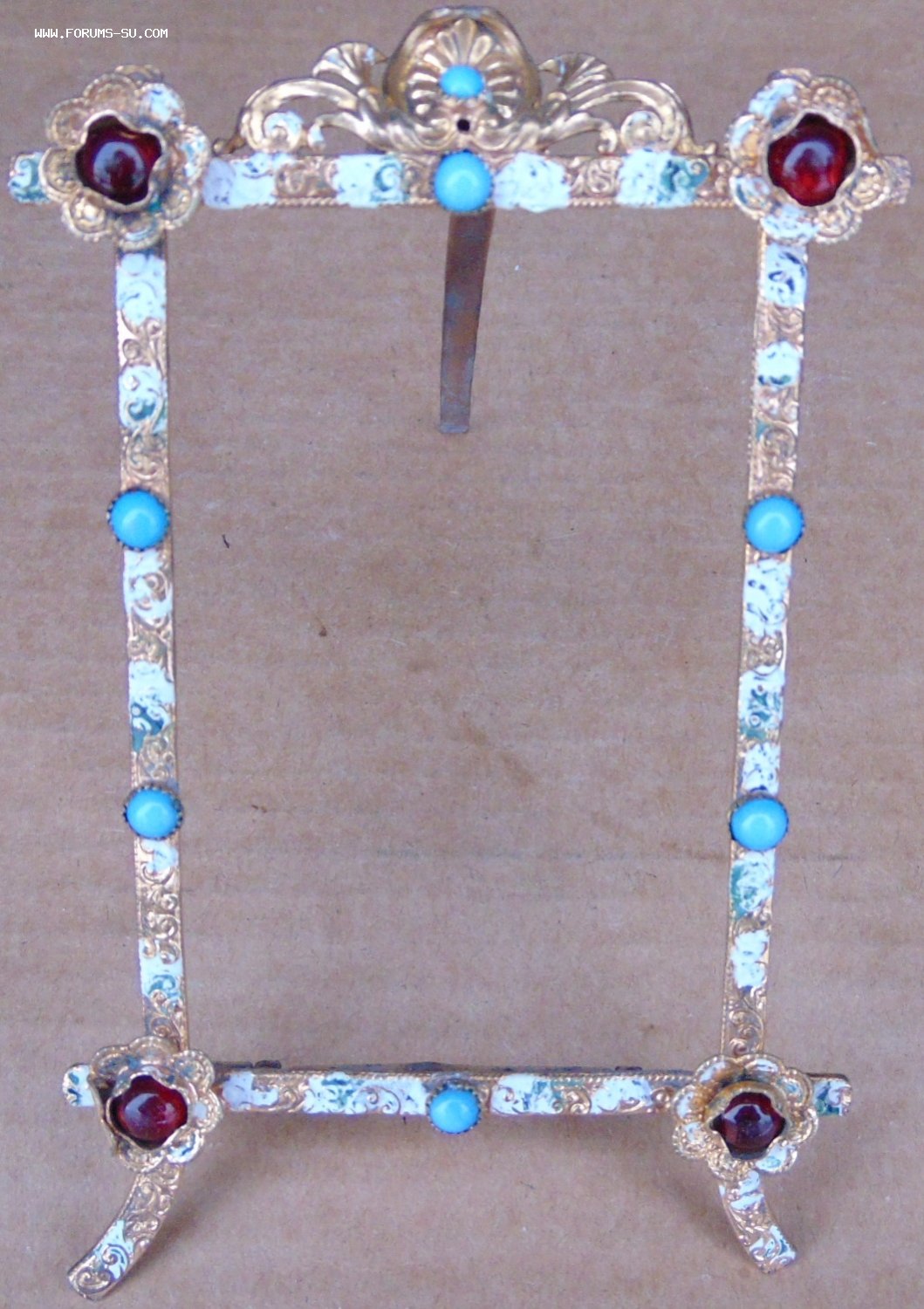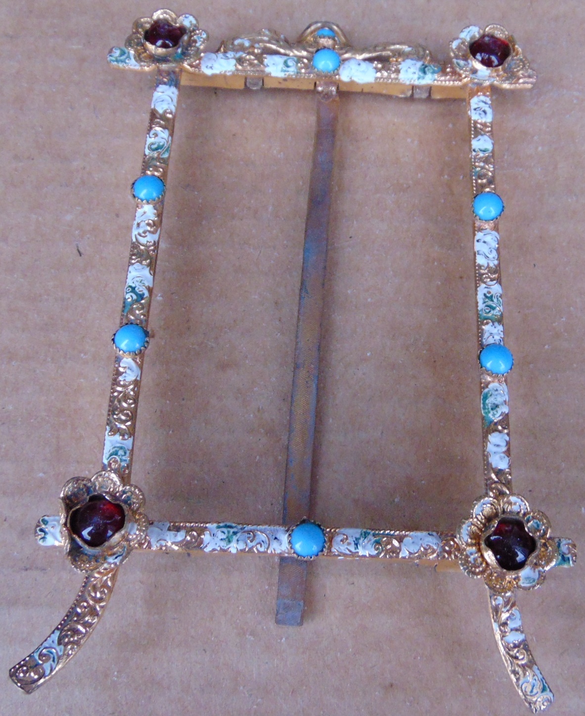 Старинная бронзовая рамка для фотографии. Эмаль.К амни. Цветы