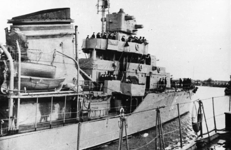 Оборона Одессы22 сентября 1941 года совместно с эсминцами «Бойким» и «Беспощадным» обеспечивал огневую поддержку десанта под Григорьевкой и подвергся воздушной атаке 9-и «юнкерсов» сбросивших на «Безупречный» 34 бомбы. От близких разрывов эсминец получил серьёзные повреждения. В наружной обшивке было насчитано 404 осколочные пробоины, из них 152 — ниже ватерлинии. В районе 180-190-го шпангоутов образовались гофры с разрывами и трещинами по верхней палубе. Первое машинное и третье котельное отделения, а также кормовые отсеки быстро заполнились водой. Корабль накренился на правый борт на 17° и лишился хода. С большим трудом его удалось отбуксировать в Одессу. Дифферент на корму при этом достигал 2 м, а запас плавучести сократился до 28 % от нормального.