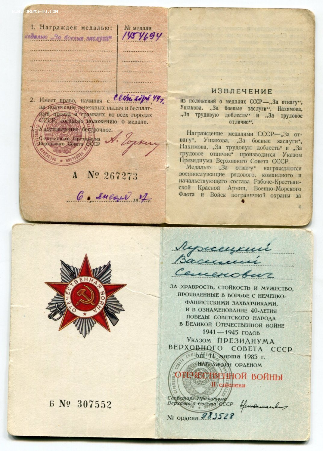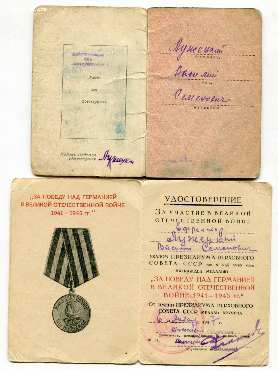 Редкий вариант документа к ОВ2 - на юбилейном удостоверении к ОВ, образца 1985г.