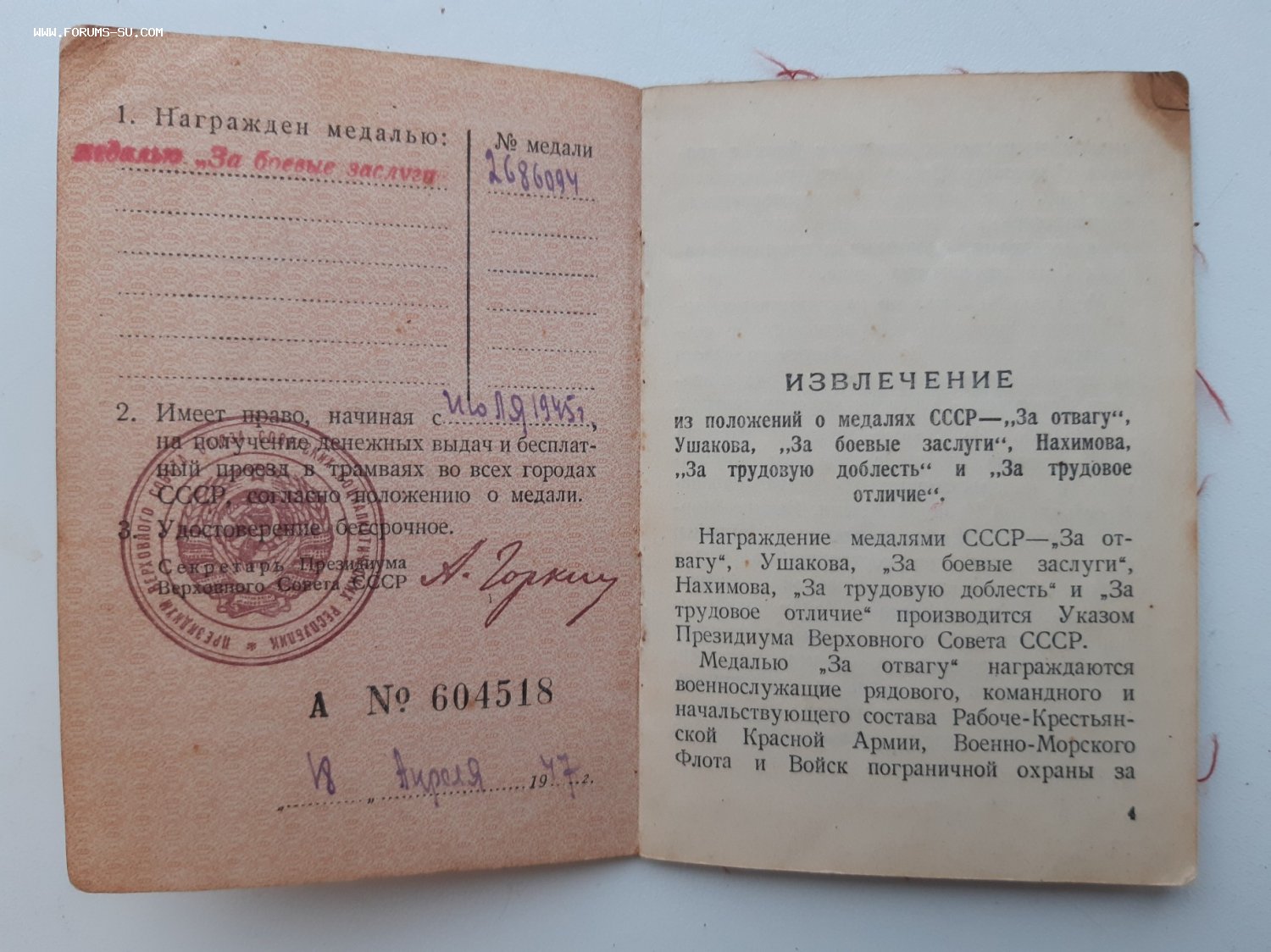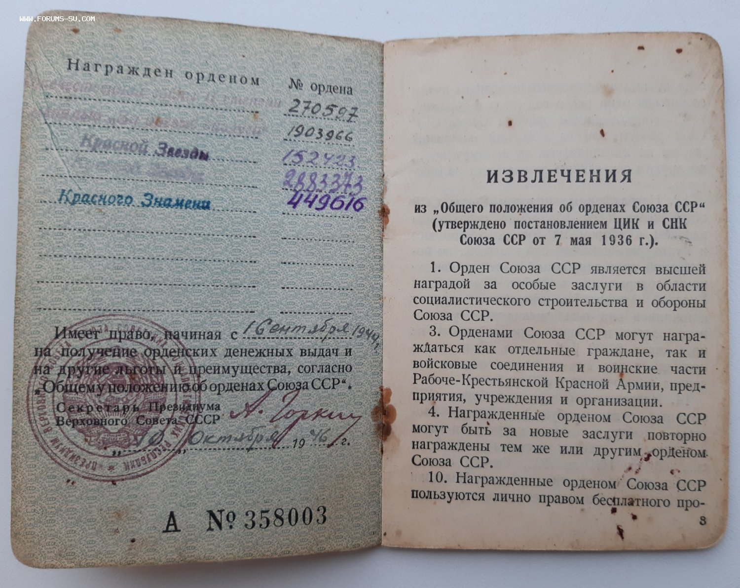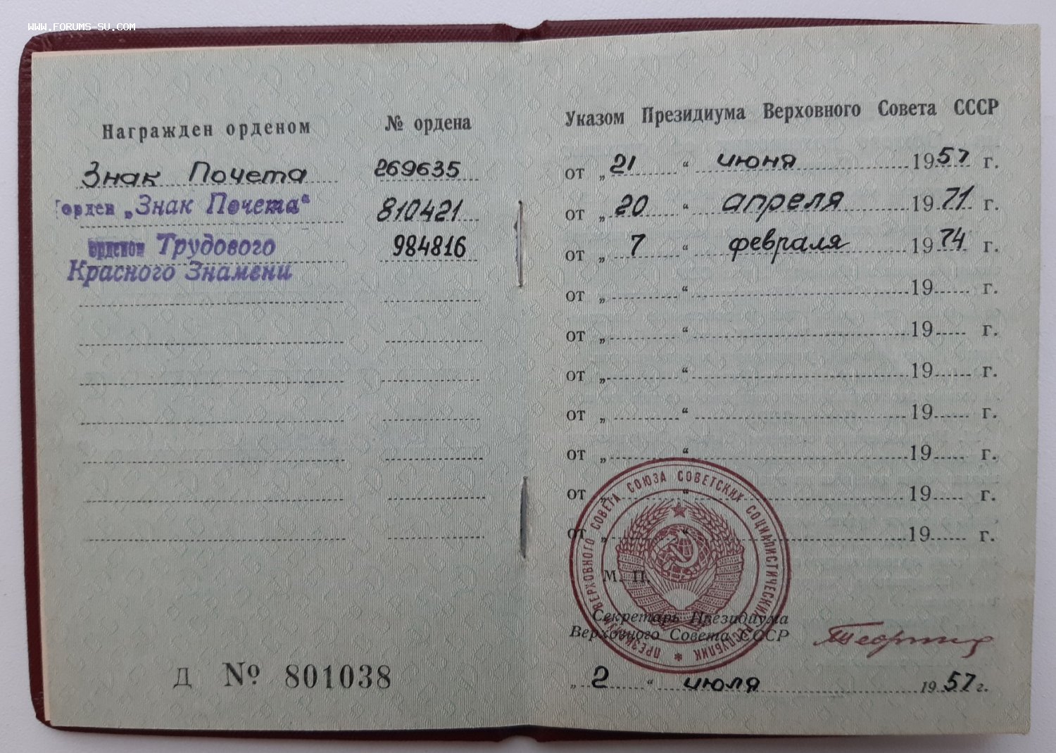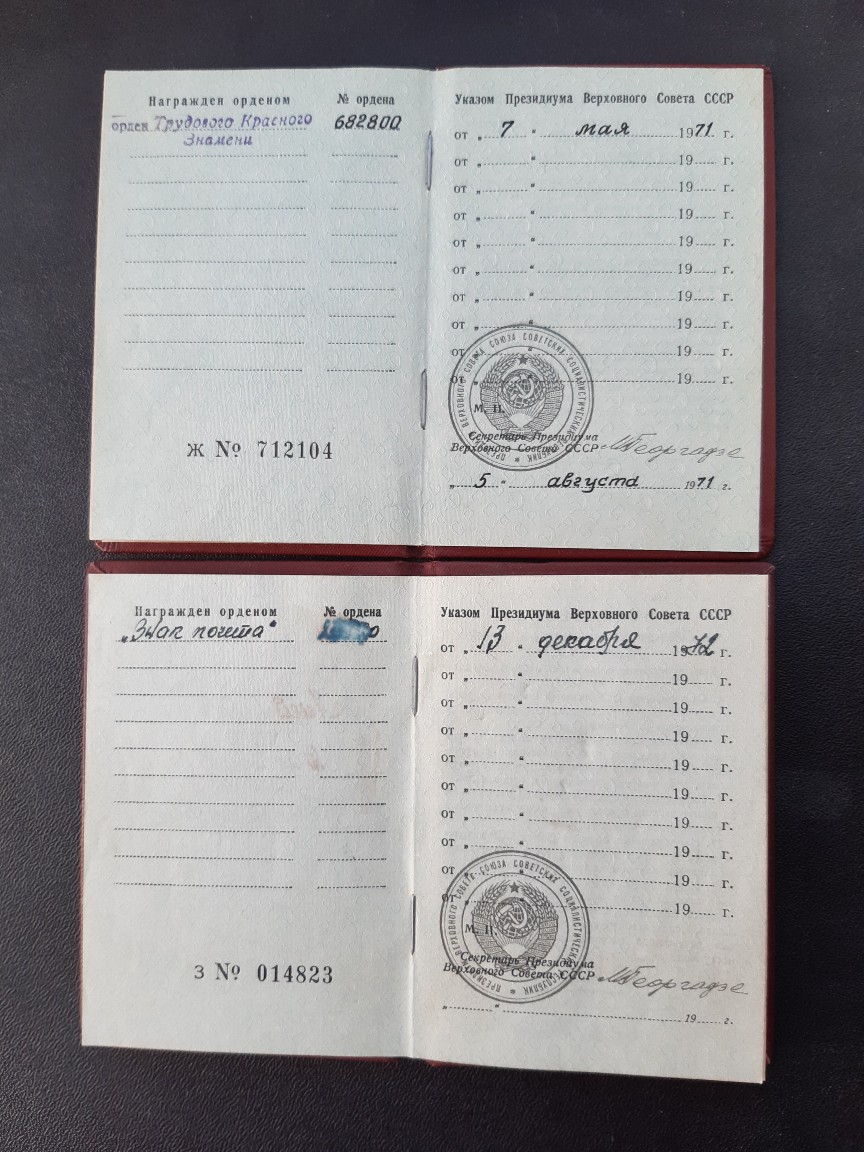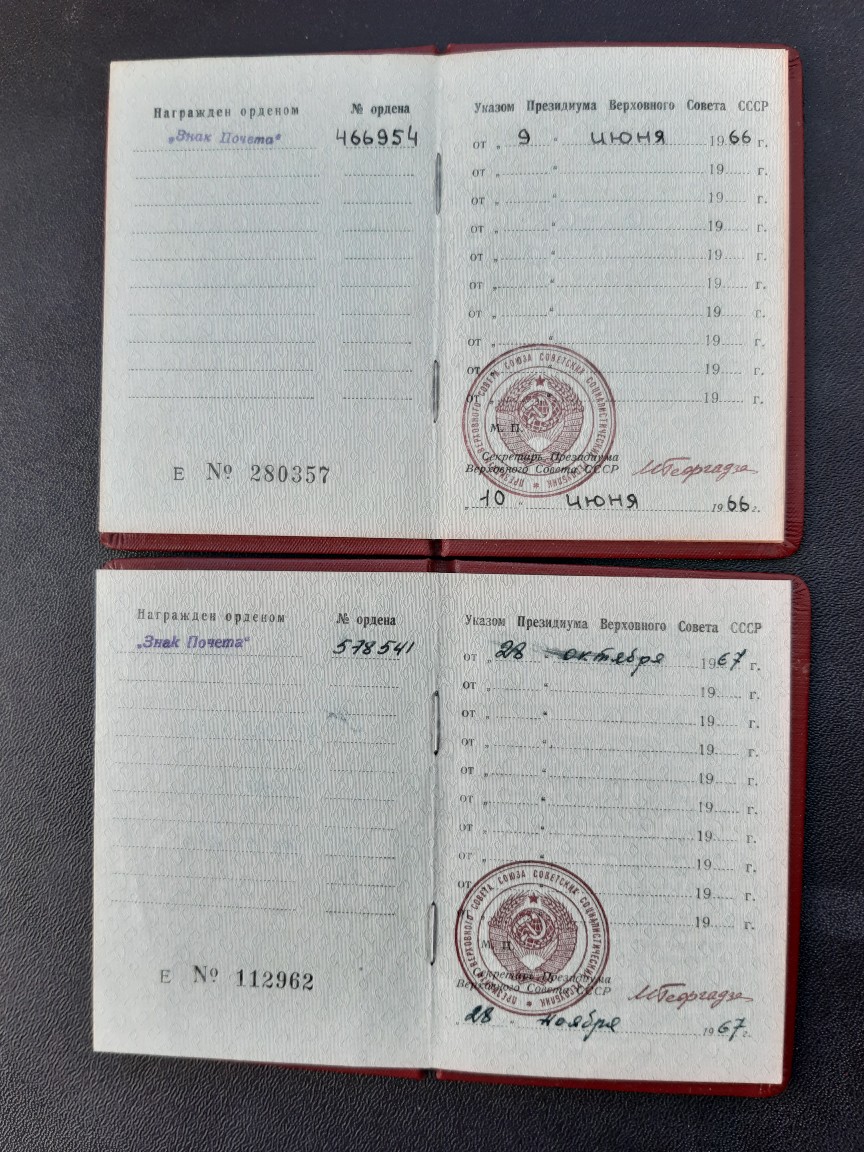 ОК на знак почета 466954 и удостоверение на трудовое отличие б/н выбыли.