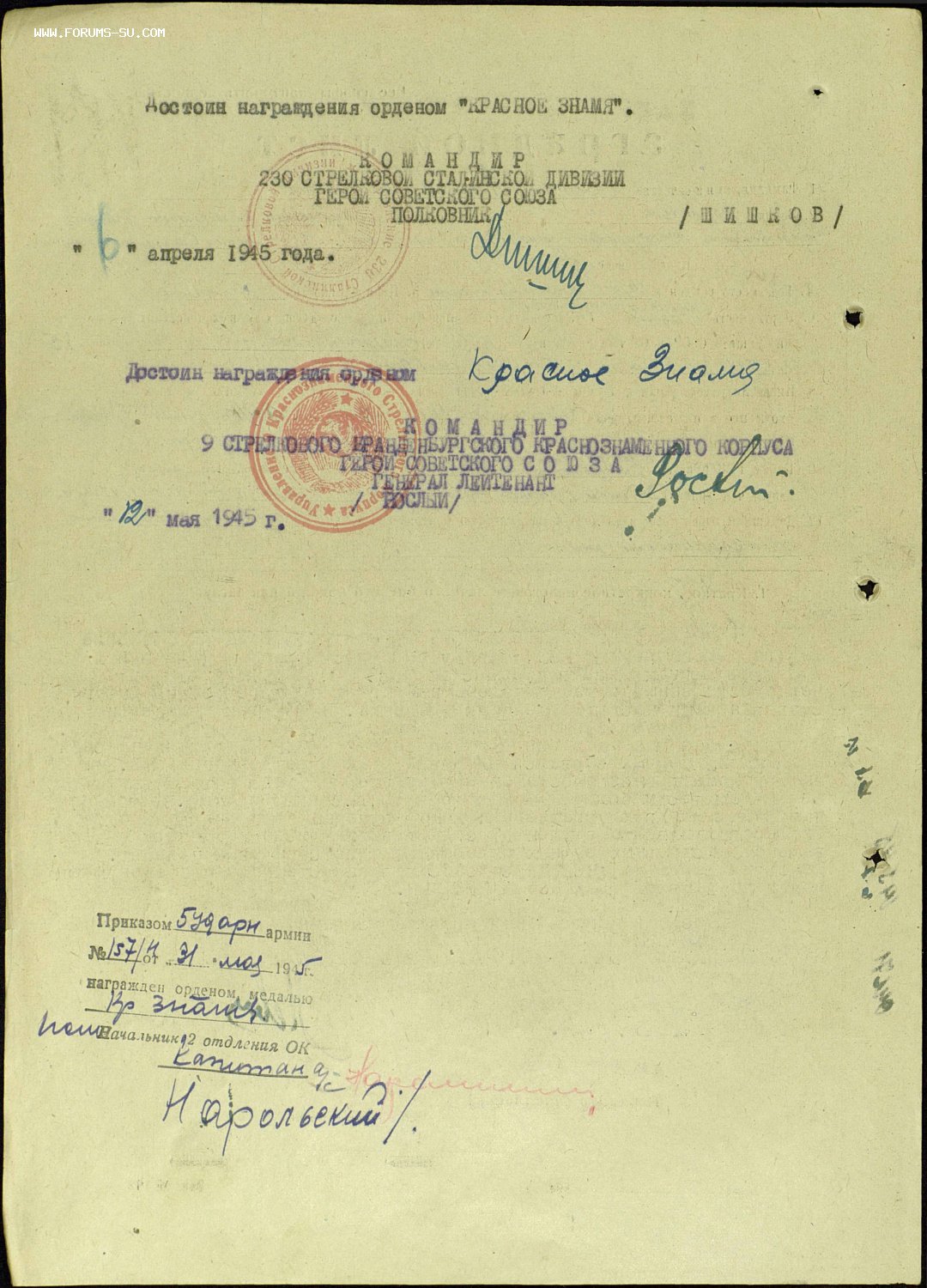 14 апреля 1945 года 230-я стрелковая дивизия была выведена на восточный берег р. Одер. Мы поняли, что скоро начнется последнее и решающее наступление. И действительно, в ночь на 16 апреля дивизия совершила 20-ти километровый марш и вышла на Кюстринский плацдарм, где уже вовсю бушевала артиллерийская подготовка. 230-я стрелковая дивизия к началу наступления была в резерве командующего 5-й ударной армии, 17-го апреля она была передана во 2-й эшелон 9-го стрелкового корпуса и 18 апреля вступила в бой после прорыва второй полосы обороны на Зееловских высотах в районе г. Гузов, где проходила третья оборонительная полоса. В тот день мы прошли около 10 км, и вышли на кольцевую Берлинскую автостраду. С ее преодолением бои пошли непосредственно в городе Берлине. Там же мы испытали силу огня немецких 85-мм зениток Берлинской противовоздушной обороны. Обрушившиеся на нас внезапно разрывы шрапнельных снарядов зениток нанесли ощутимые потери, погиб батальонный фельдшер, многие были ранены, но, по команде капитана Нестеренко П.А., мы быстро вышли из зоны огня и продолжали наступление.