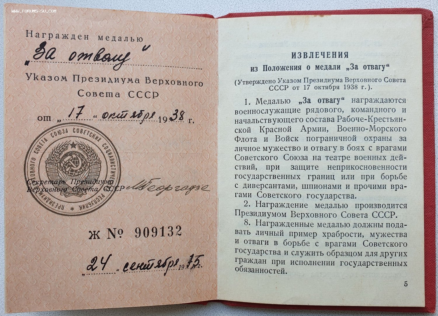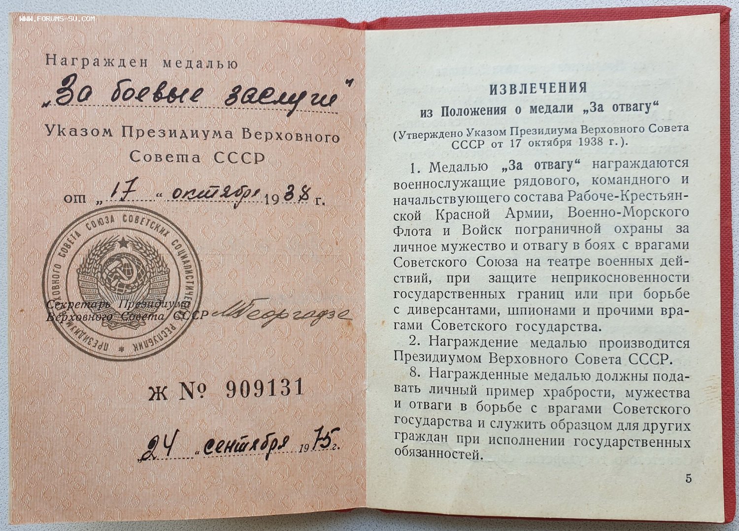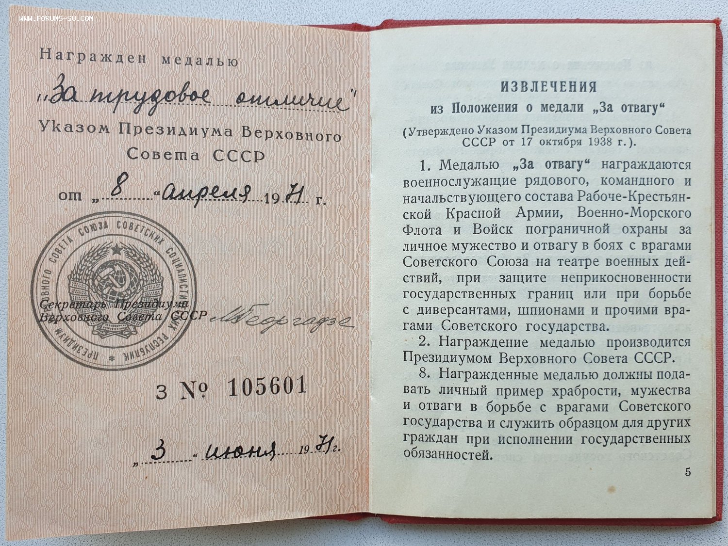 Доки к Отваге и ЗаБЗ номера подряд. В графе указов писарь внёс даты учреждения этих медалей.