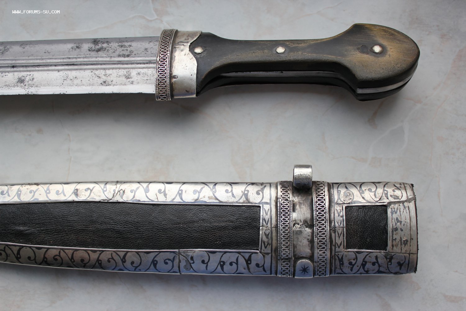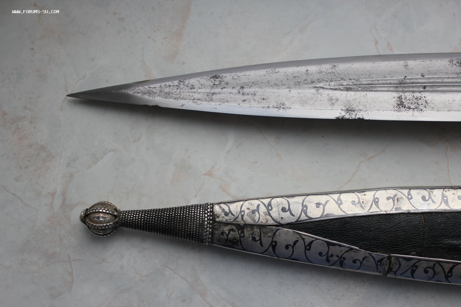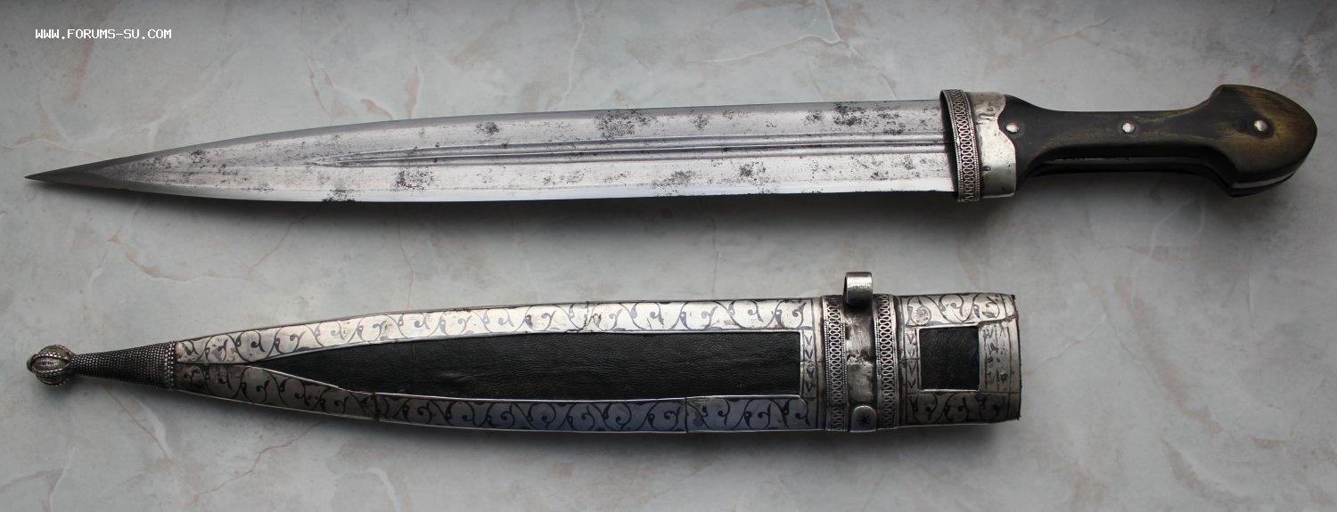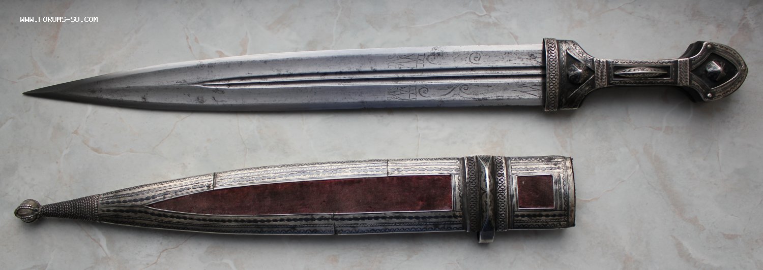 Кинжал оформлен в ключе конца 19 века. Очень интересная и красивая оправа кинжала сделана из серебра 84 пробы. На ручке сохранилось клеймо Тифлийской пробирной палатки. Длина кинжала - 56,5 см. Длина клинка - 40,5 см. Ширина клина - 4,5 см.