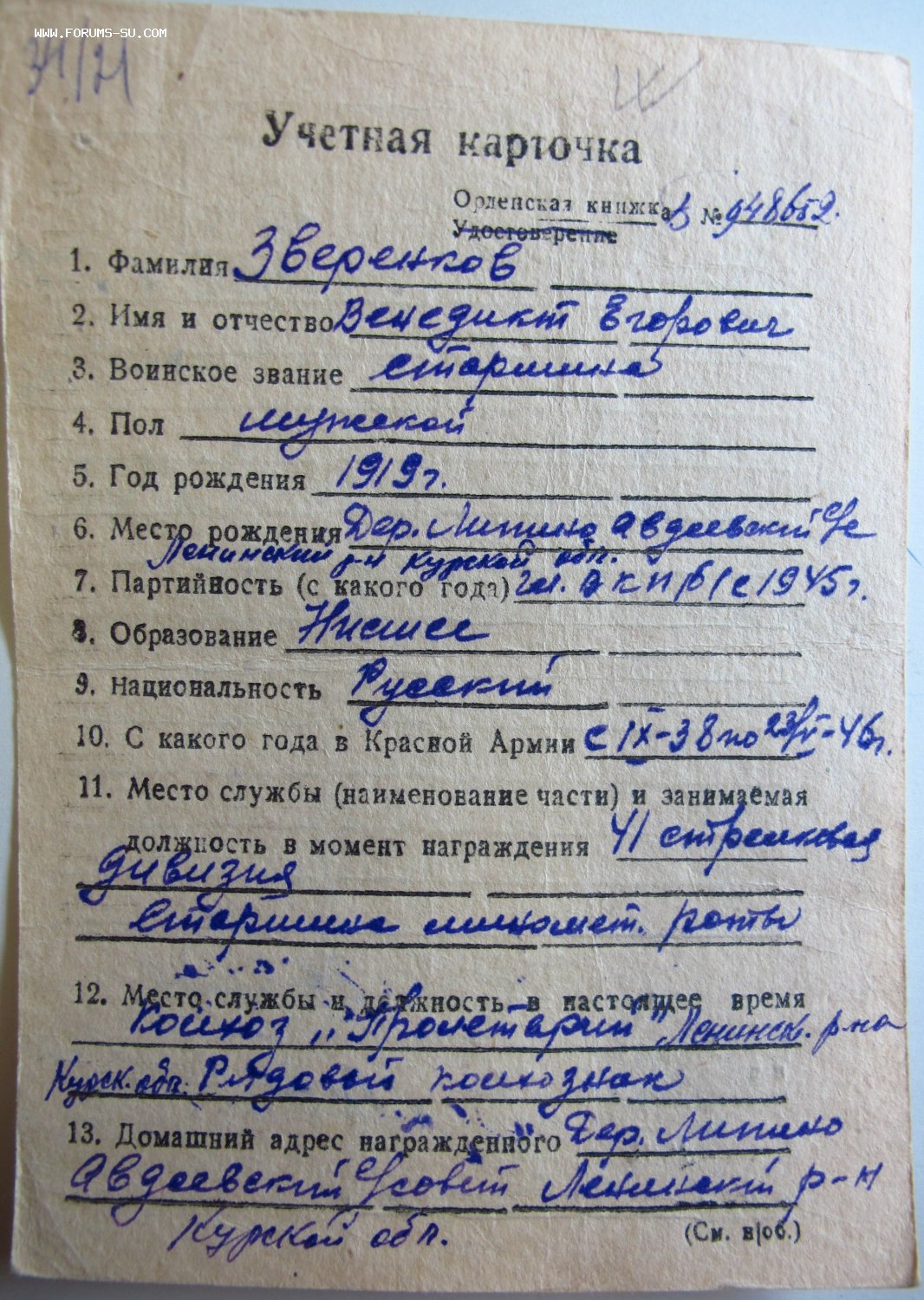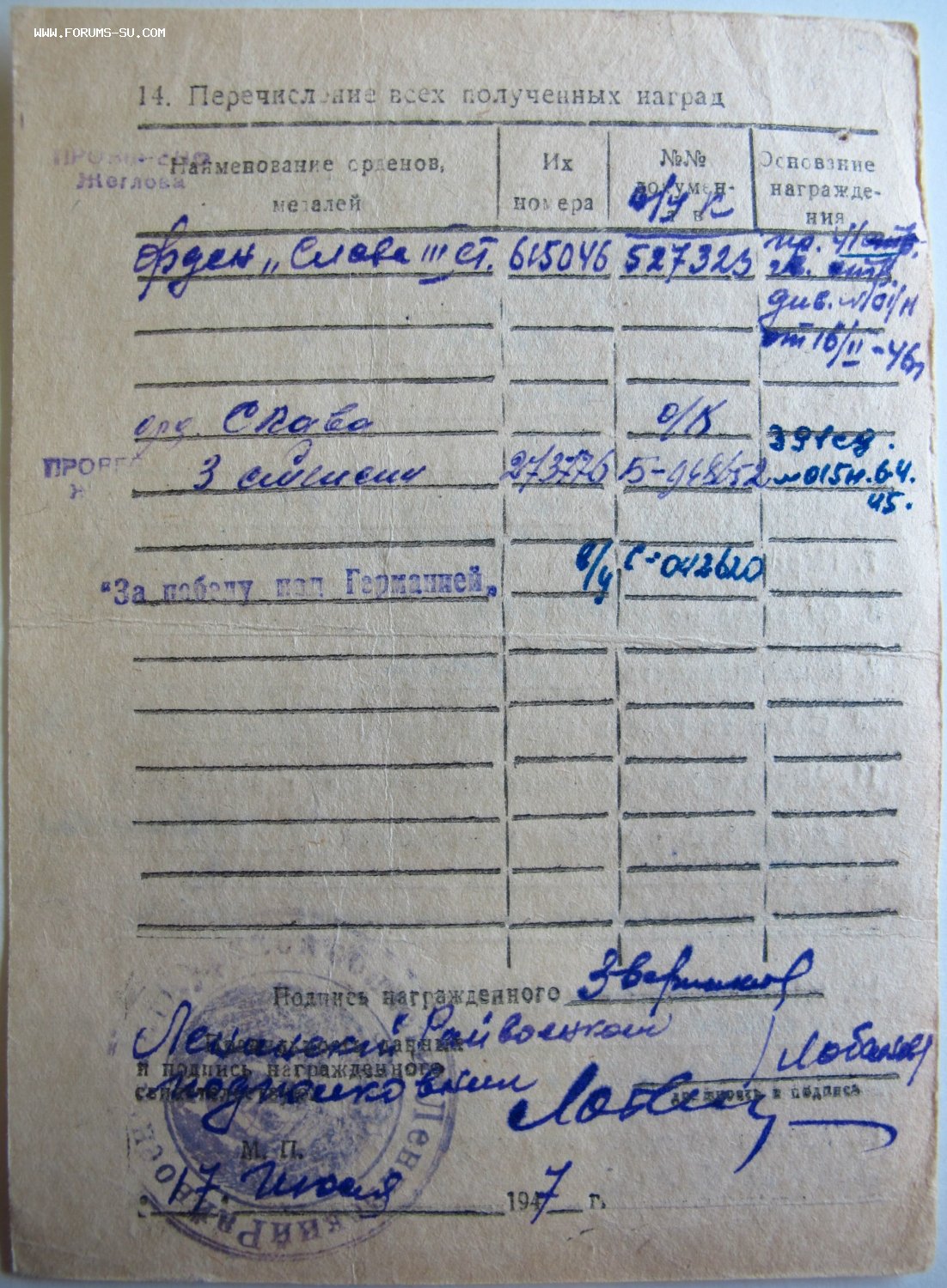 Всё подтверждено архивом. Орденская подклеена.