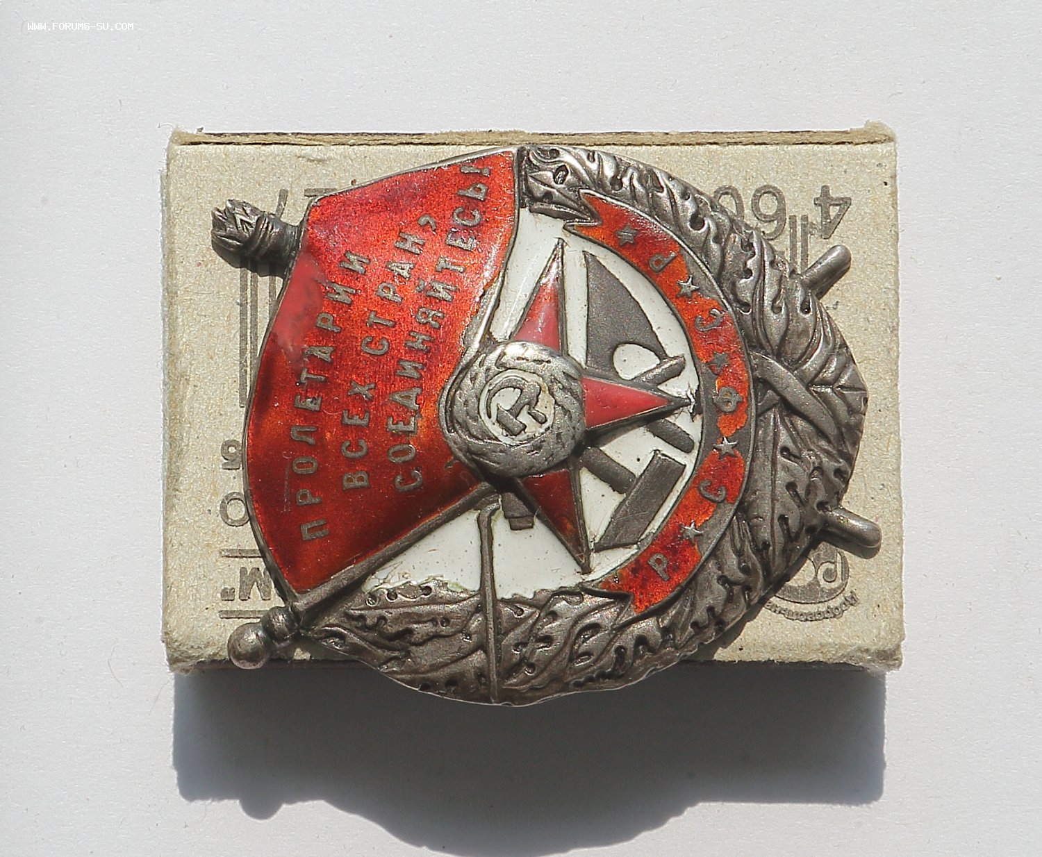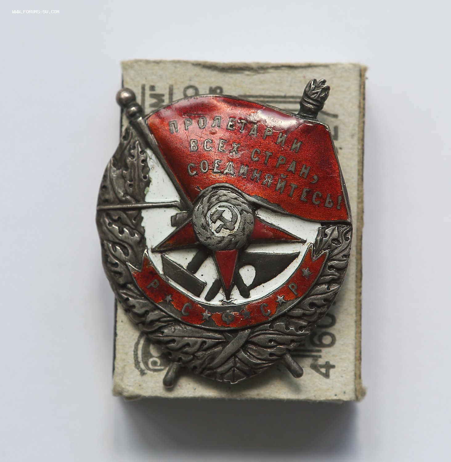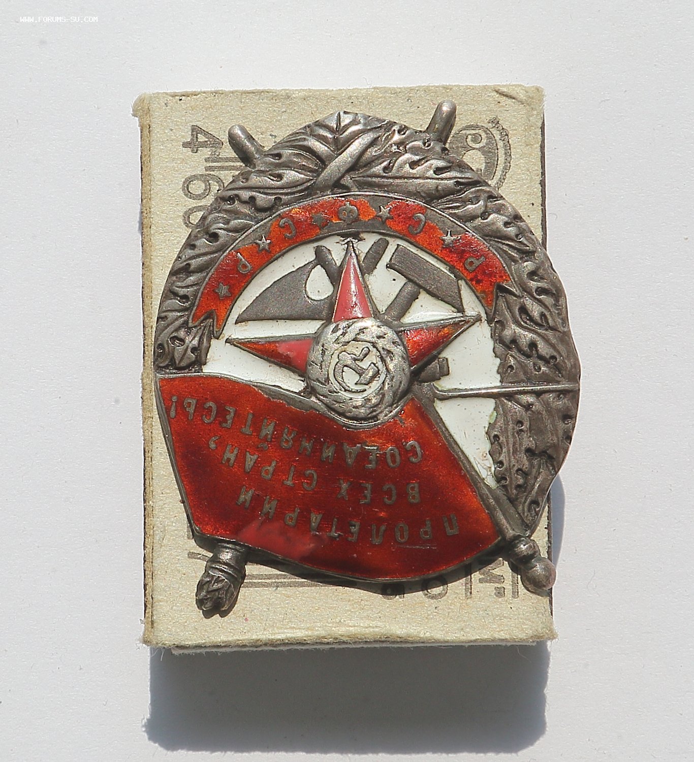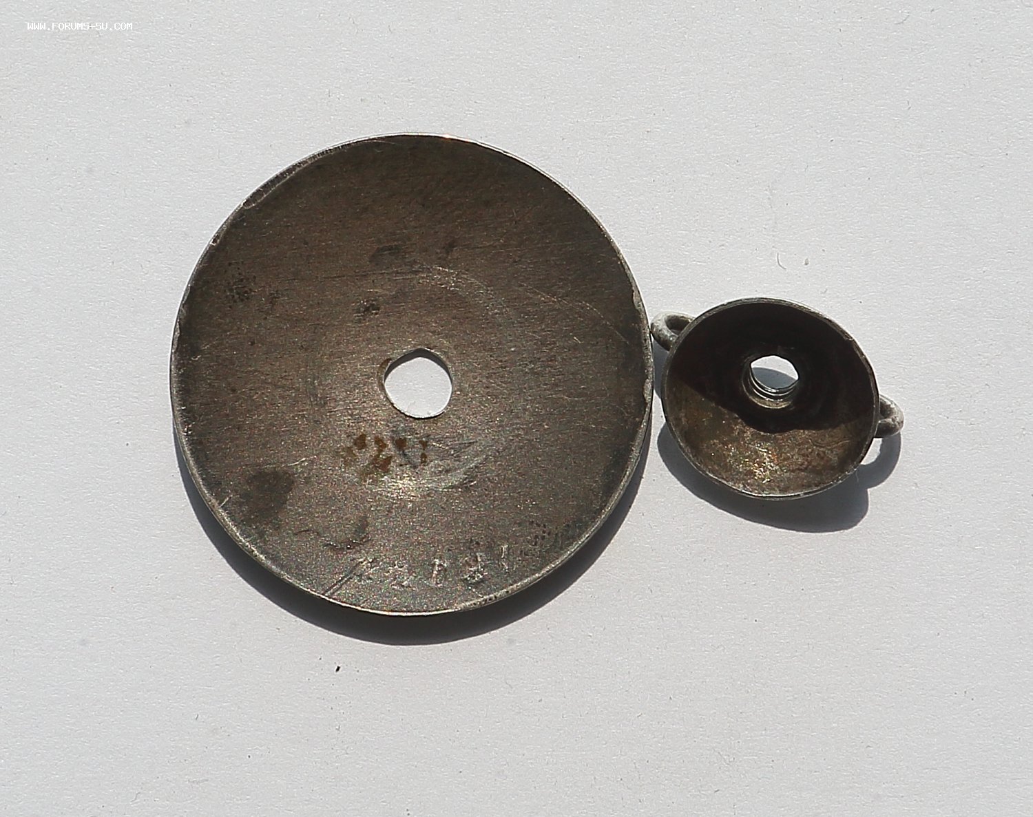Добрый день уважаемые форумчане. Аверс хорошо виден на фото: верхняя часть знамени подмазка, сколы эмали. Реверс: рога либо укрепляли, либо подпаивали, следы припоя, левое копыто- трещина, у винта трещинка, брак при штамповке. Гайка люфтит, резьба на винте несколько сработана.