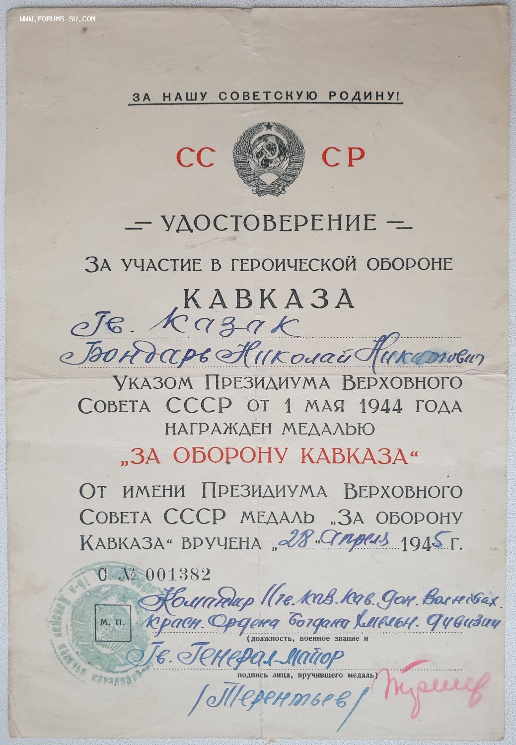 Подписал генерал-майор Терентьев Иван Васильевич