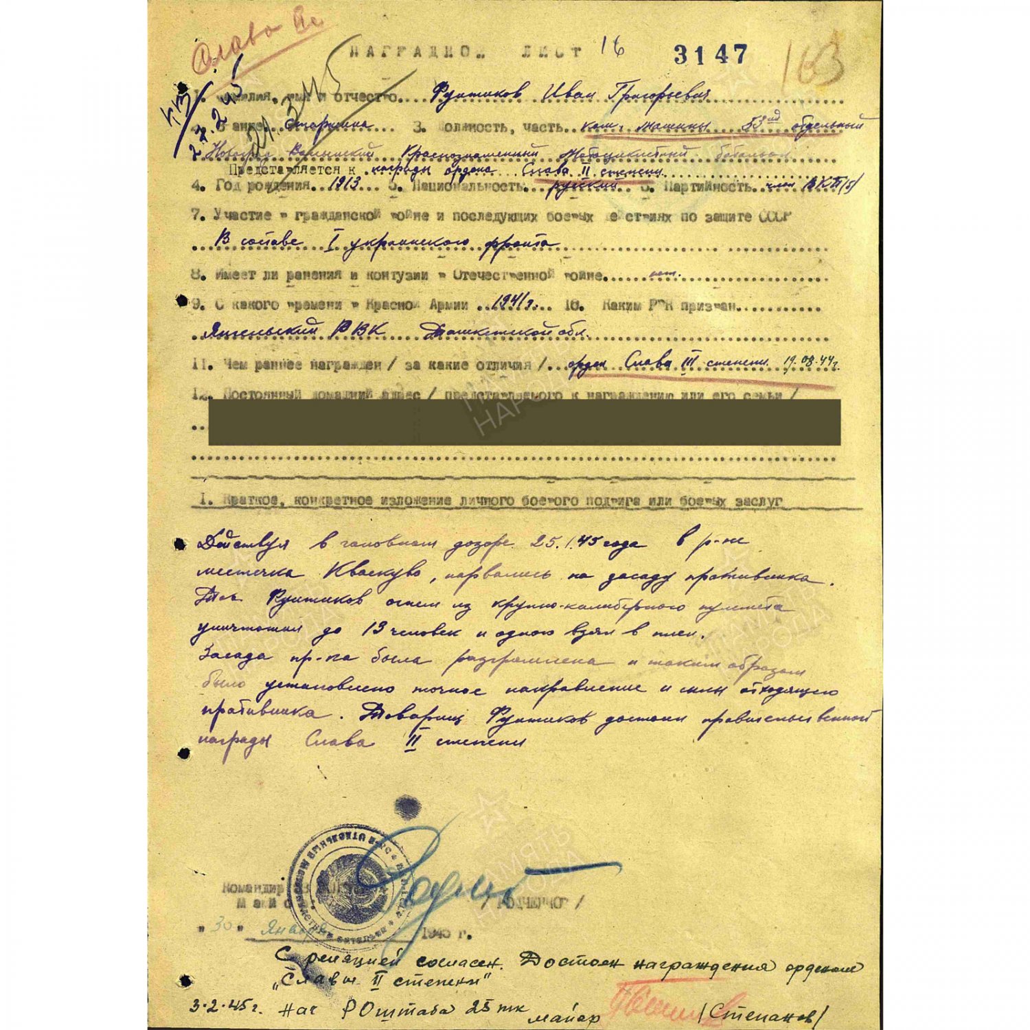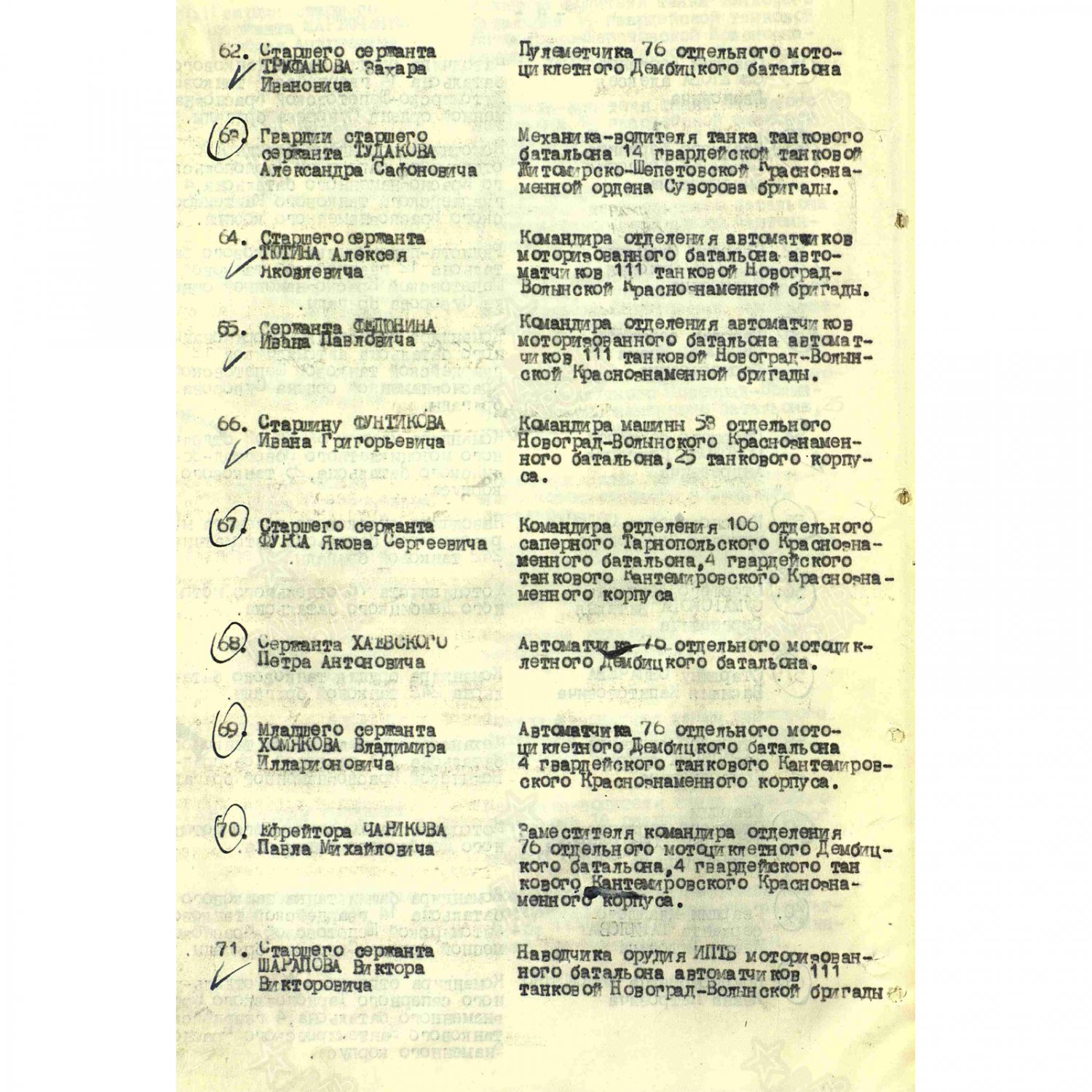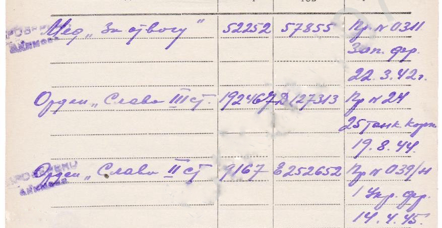 Боевые Славы на одного: 2ст. № 9197 и 3ст. № 192467, медаль Отвага № 52252 на Танкиста