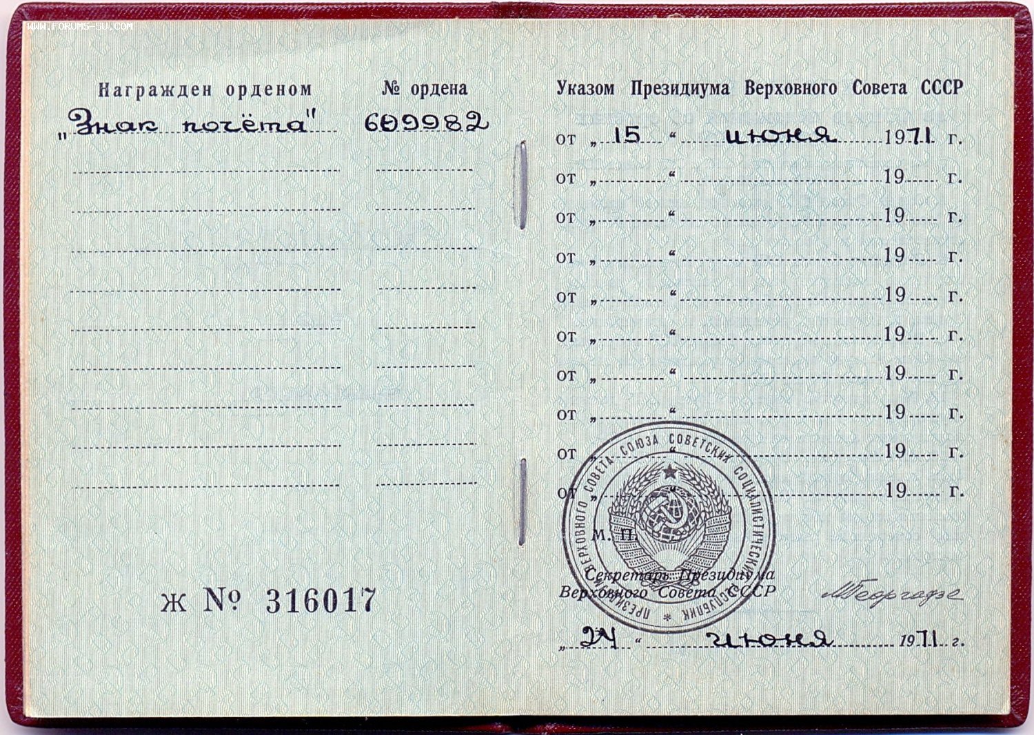 Орден с орденской книжкой. Учётная карточка и наградной лист - копии в цифровом виде.