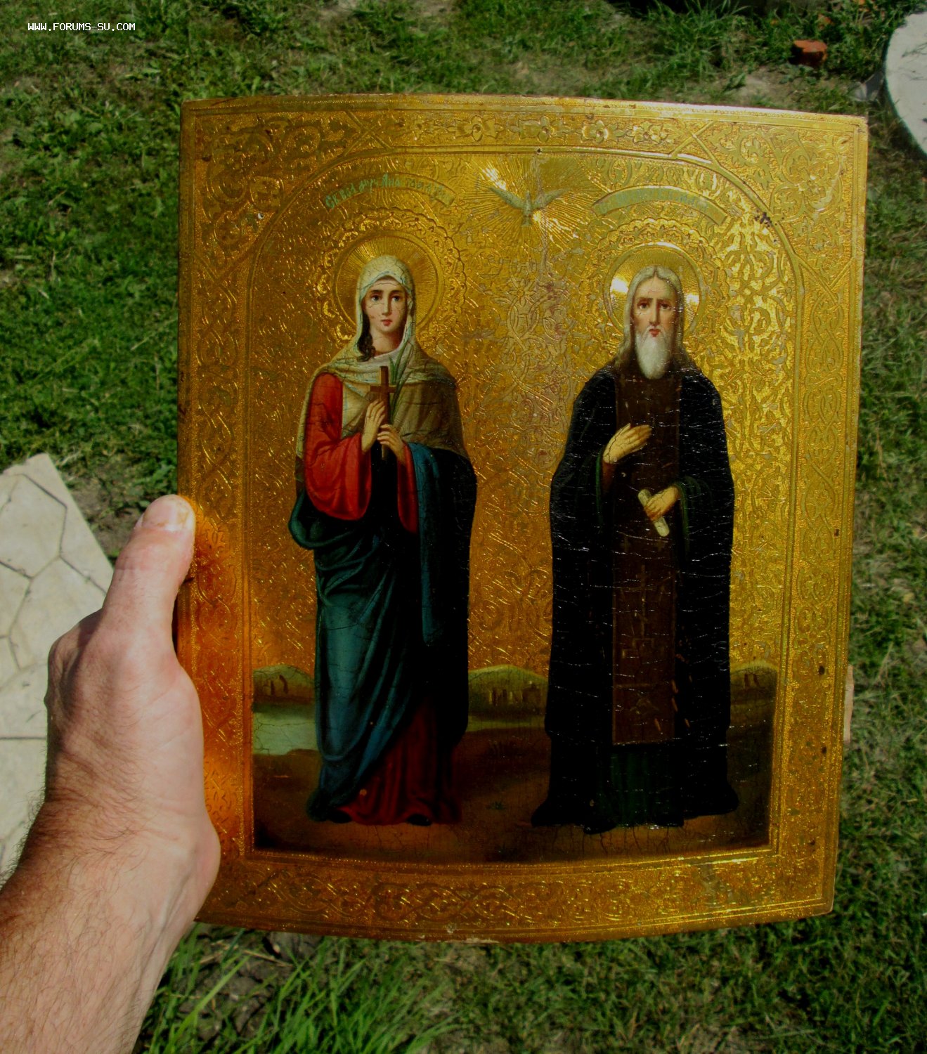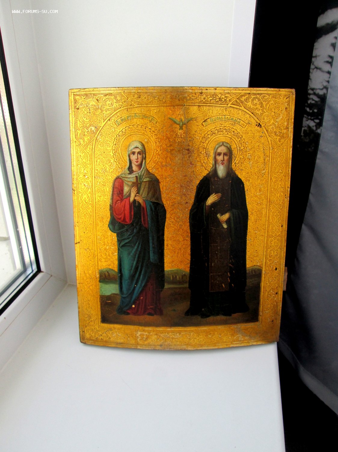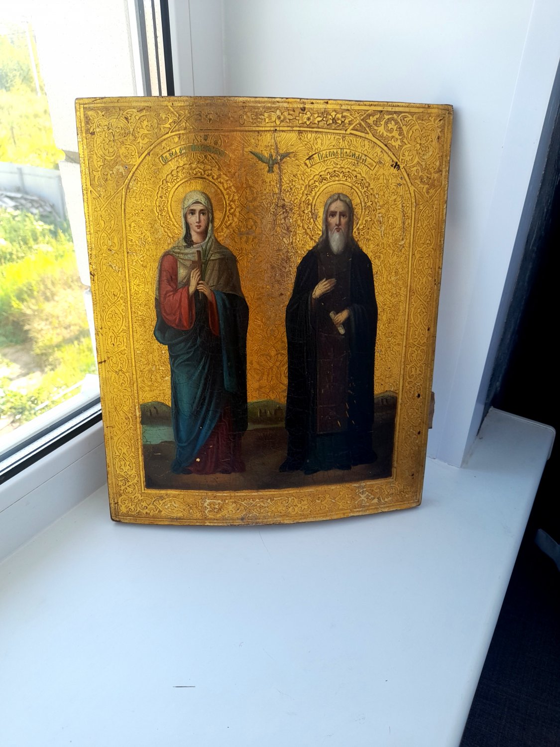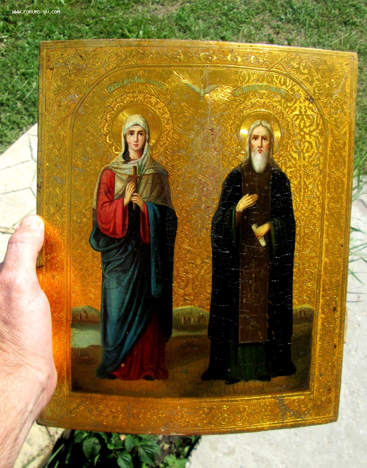 Именная Заказная Икона Святой Василий и Святая Анастасия. Живопись на сусальном золоте 19 века, без каких либо вмешательств и реставрации. Золото в отличном состоянии горит огнем под родной олифой.. Красивая чеканка по левкасу. Для семейной пары Насти и Василия вообще будет сказка.