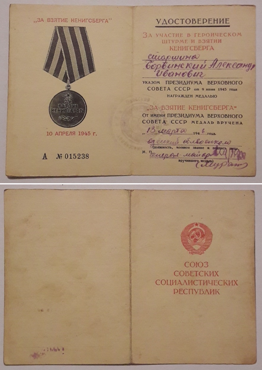 Кенигсберг. Док Одесского облвоенкомата, подпись г-м Муратова А.О. (воевавшего в Гражданскую под командованием Котовского).