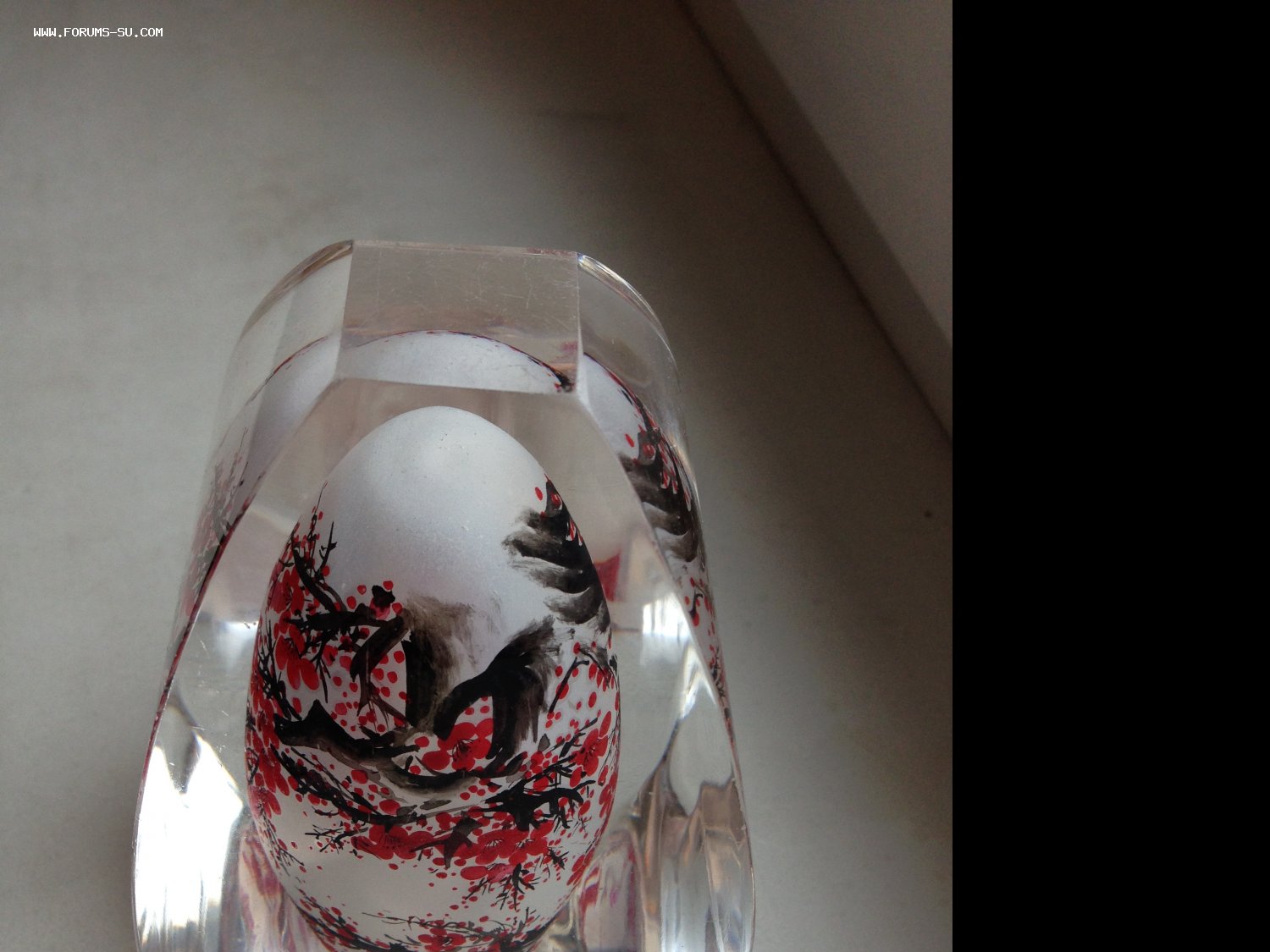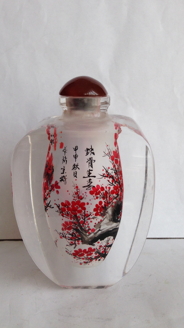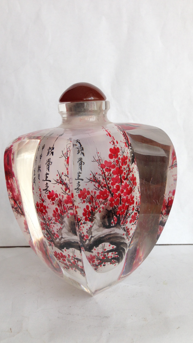 Китай, 20 век, настольная табакерка, шлифованное стекло, изысканная роспись изнутри. Пробка стекло, 12см Х 7см, вес 680 грамм.