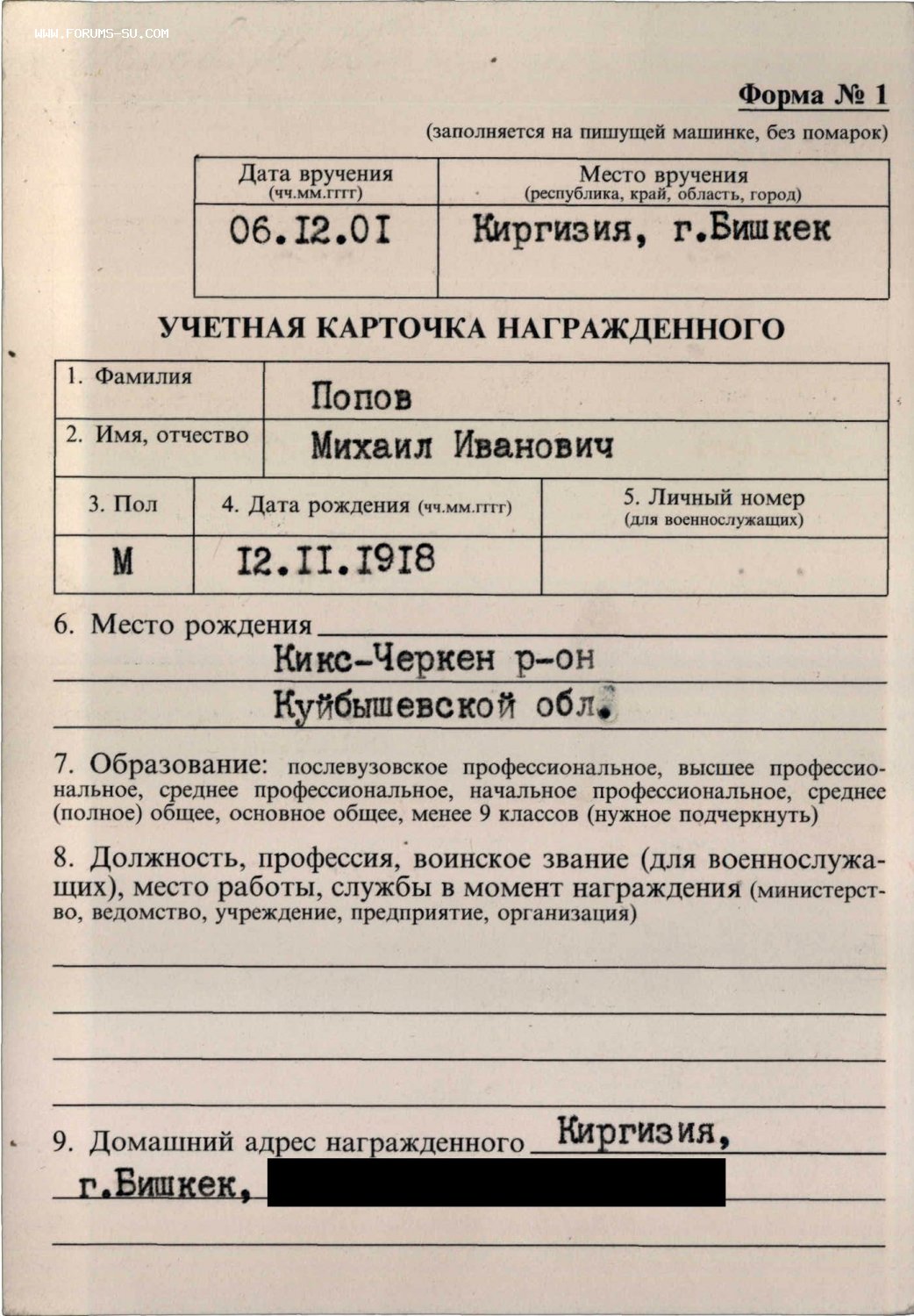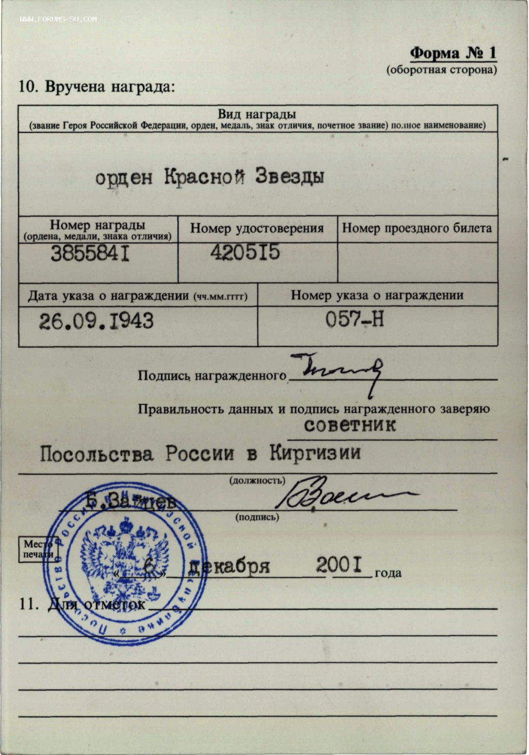 2001 год вручения. ННГ за 1943 год. Архив - копии в цифровом виде.