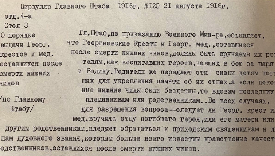 «За отличие в разведке в ночь на 28.01.1917 в районе фольварка Березина. В этой разведке пал смертью храбрых»