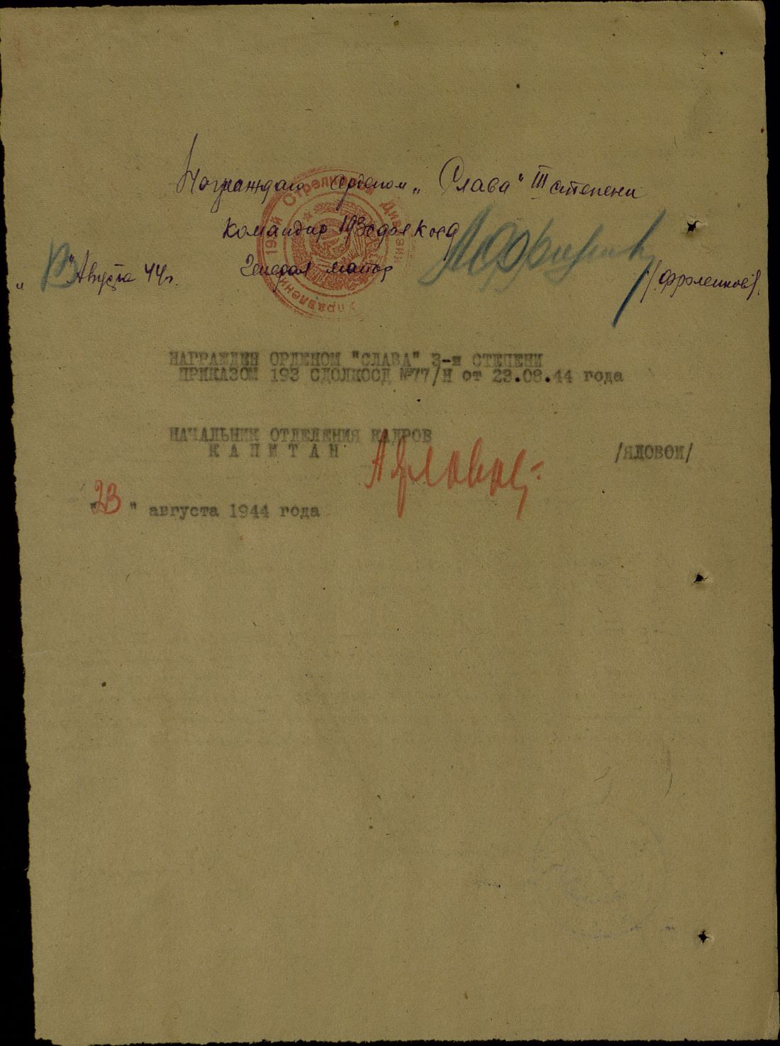 Звено целое. Хороший боевой наградной.