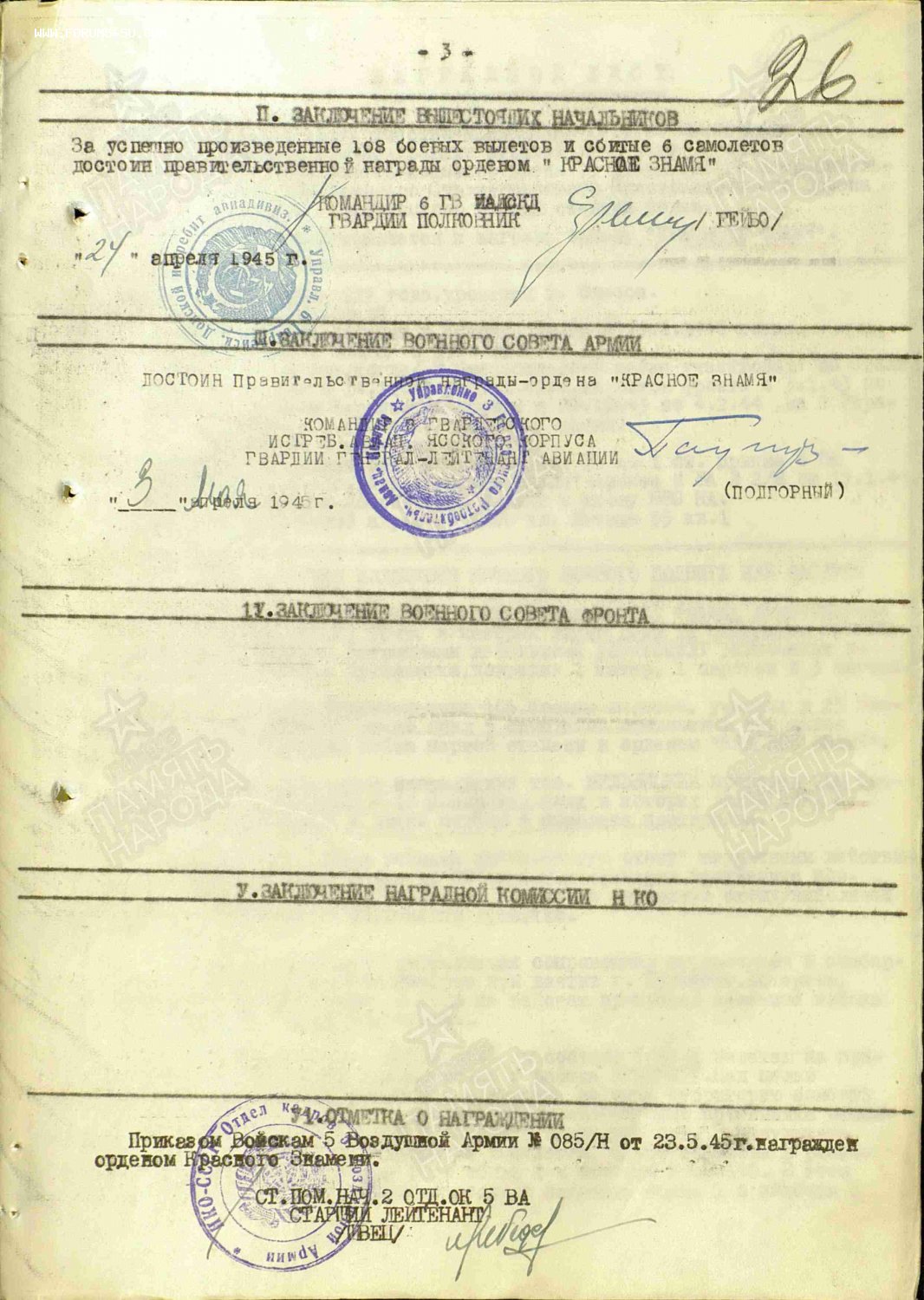 БКЗ за шесть сбитых самолётов противника