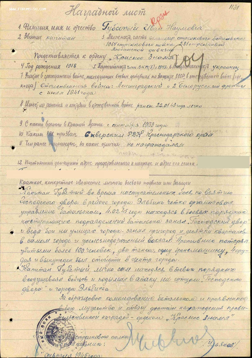 На отважного комбата за штурм "Господского двора" и города Эльбинга.