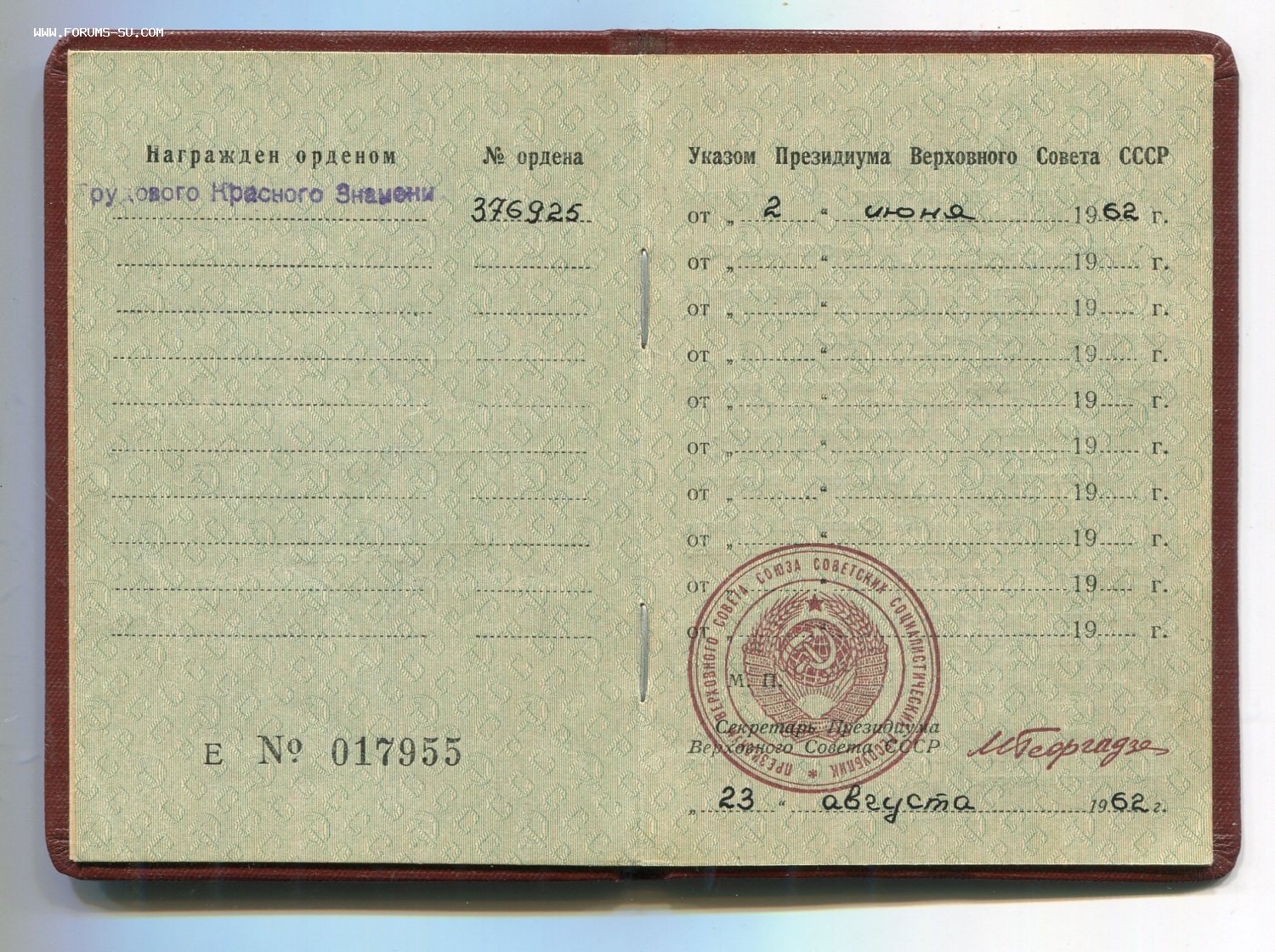 Редкий Указ, больше проходов не попадалось, хотя Трудовиков по этому Указу было вручено 190 штук.