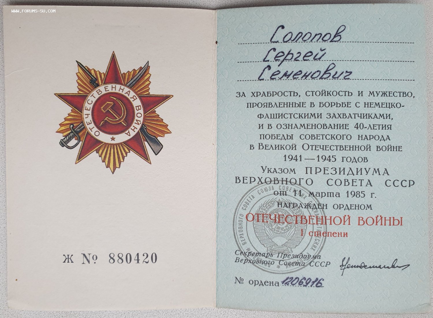 Вторую отечку вручили на два года позже первой - в 1987 году. Нечастый случай. У первого ордена есть чешуя на трёхчасовом луче.