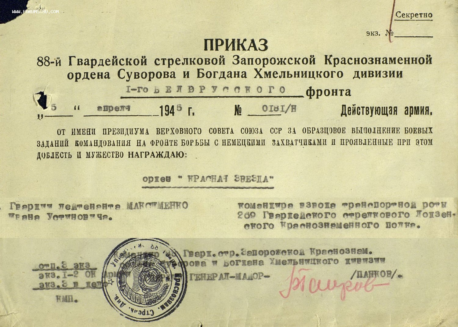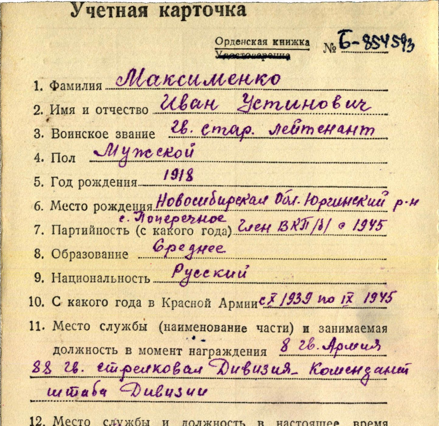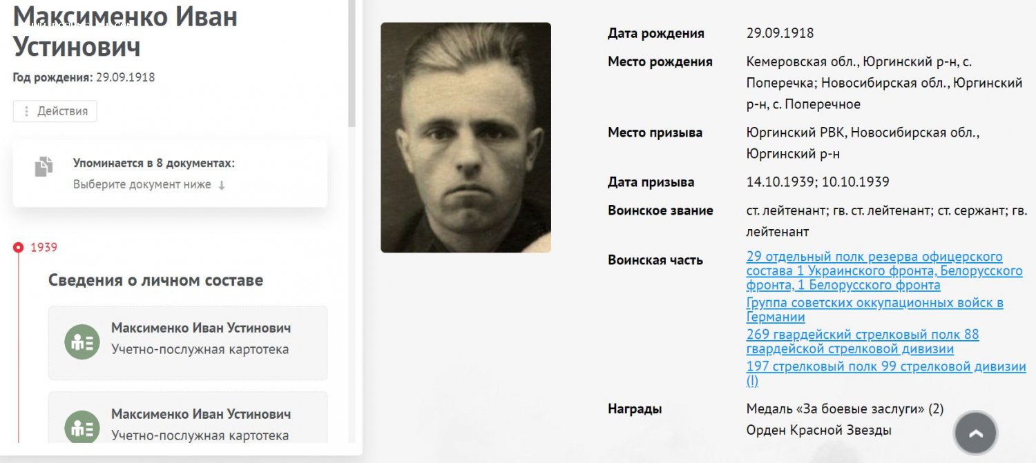 Учётная карточка - копия в цифровом виде. В ней есть отметка что в 1965 году награды возвращены.