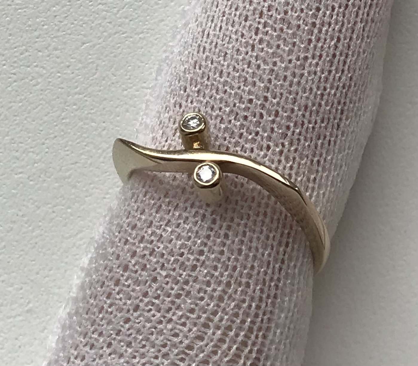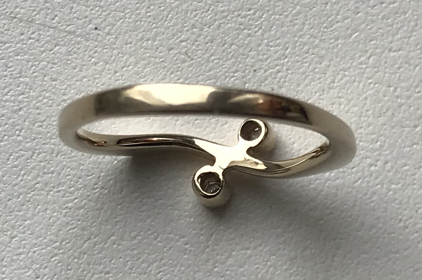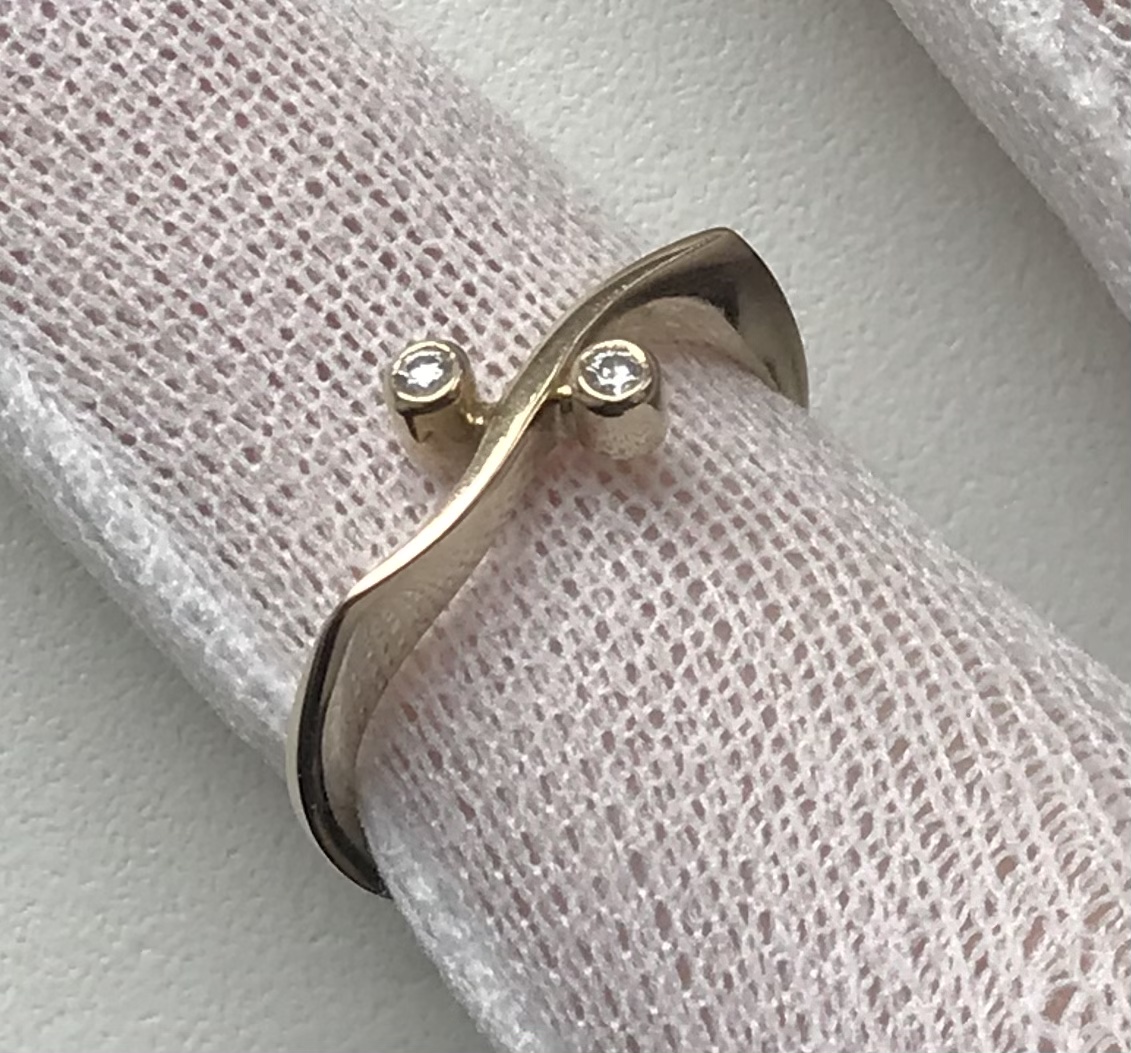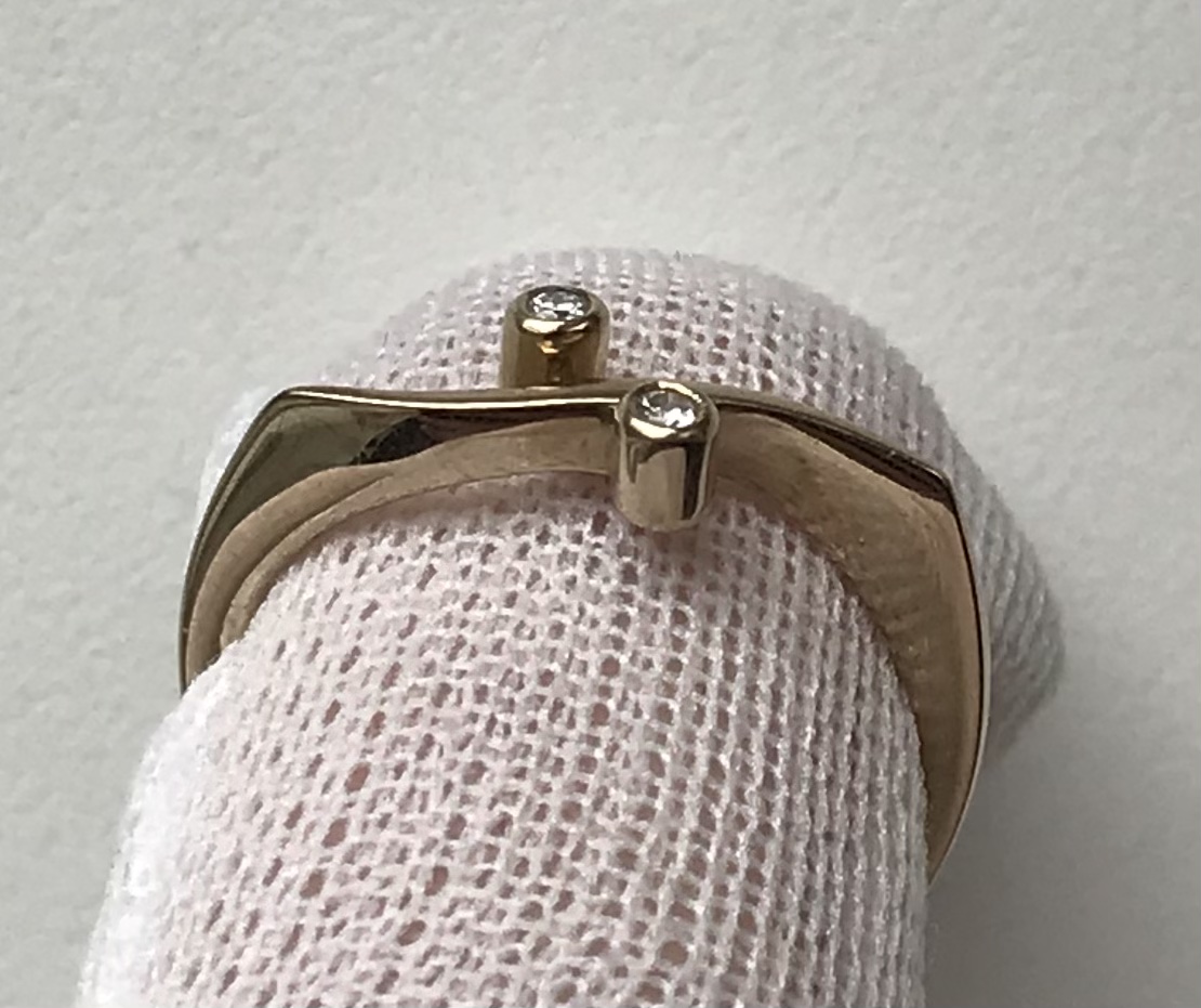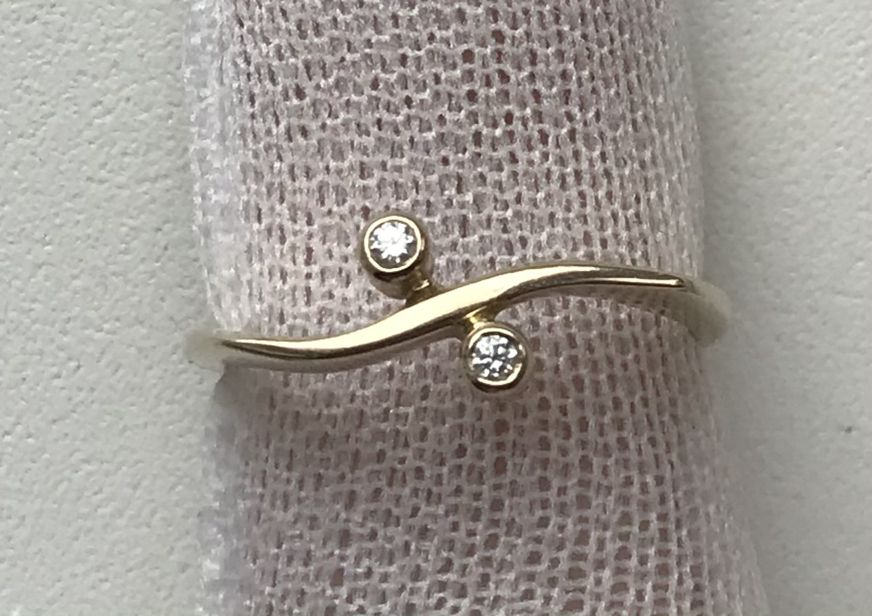 Женское золотое кольцо 750 пробы с бриллиантами. Золото. Вес 2,15 грамма. Размер кольца 17. Диаметр камней 2 мм.