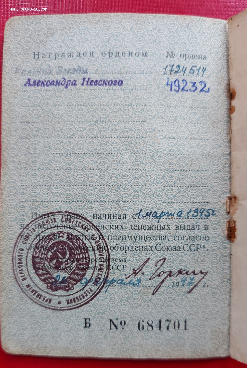Невский - ЭТАЛОН (люкс), орден не ношен.