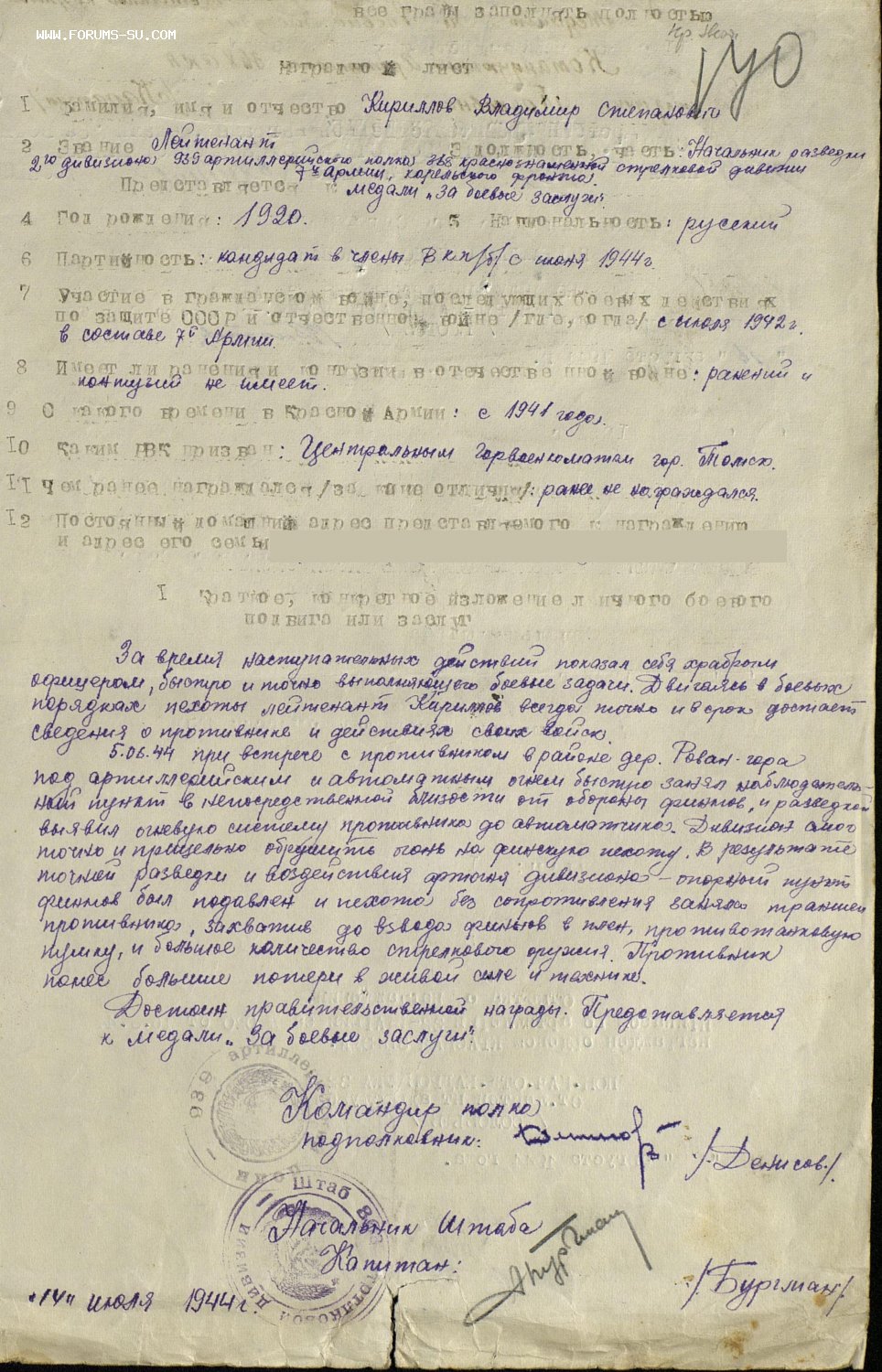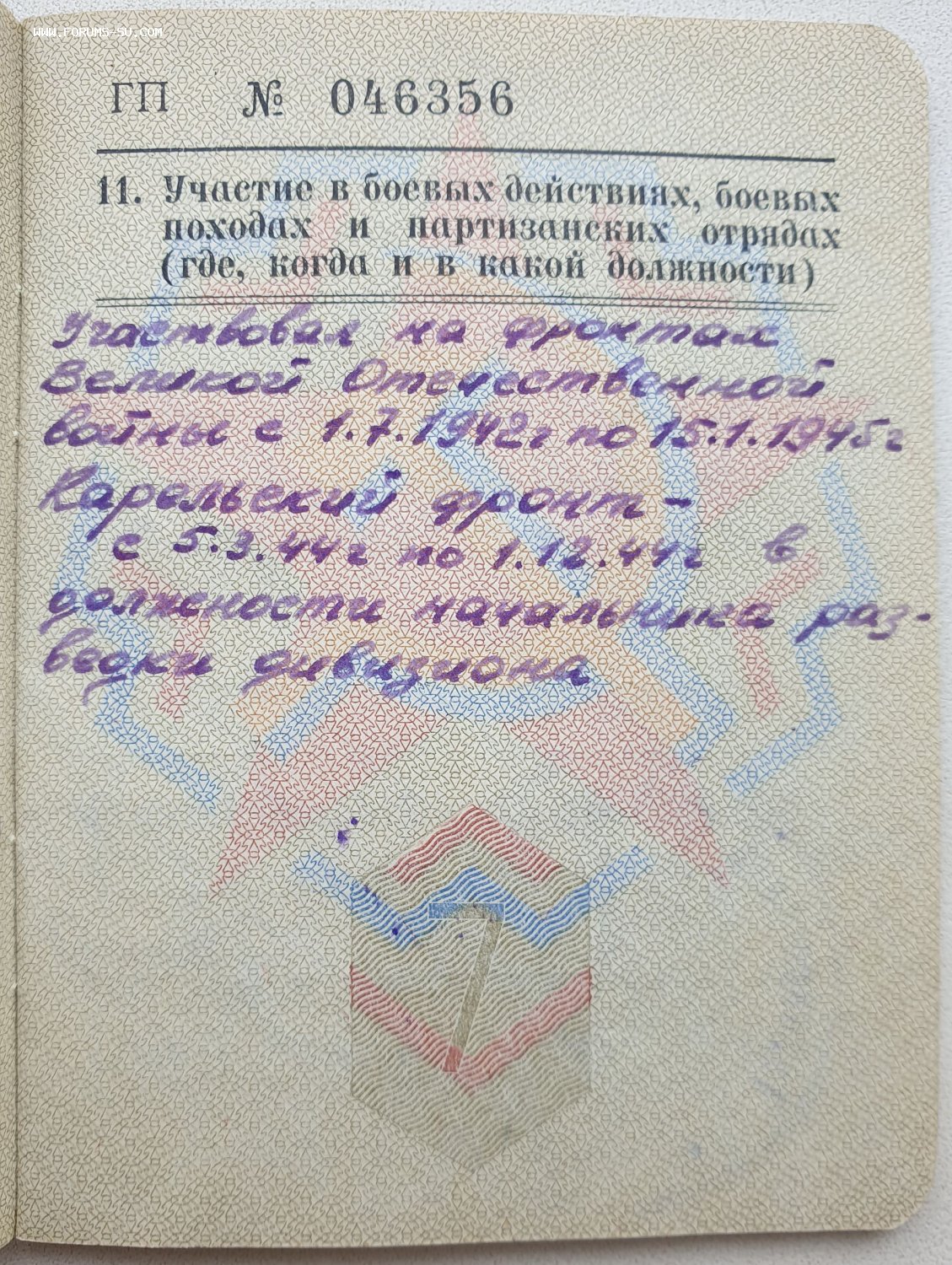 Закрутка серебро. В лот также входит военный билет.