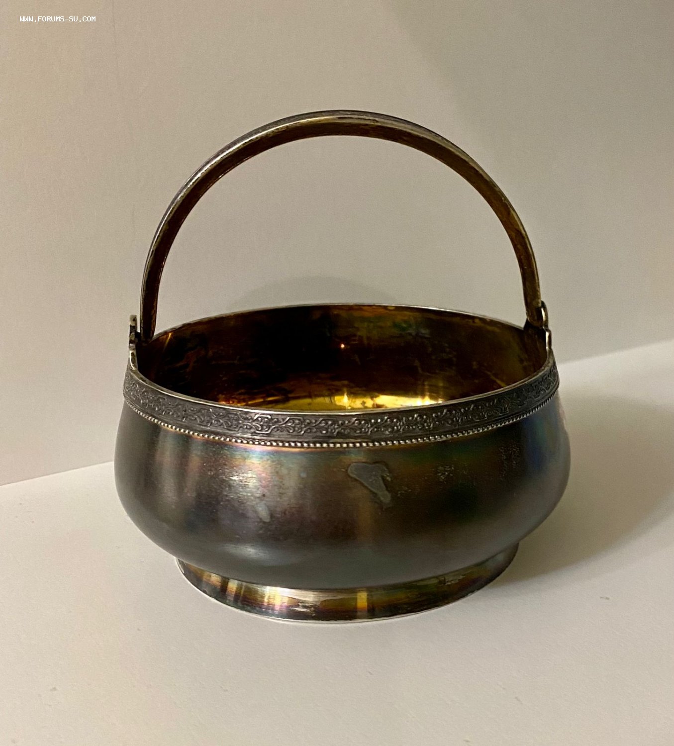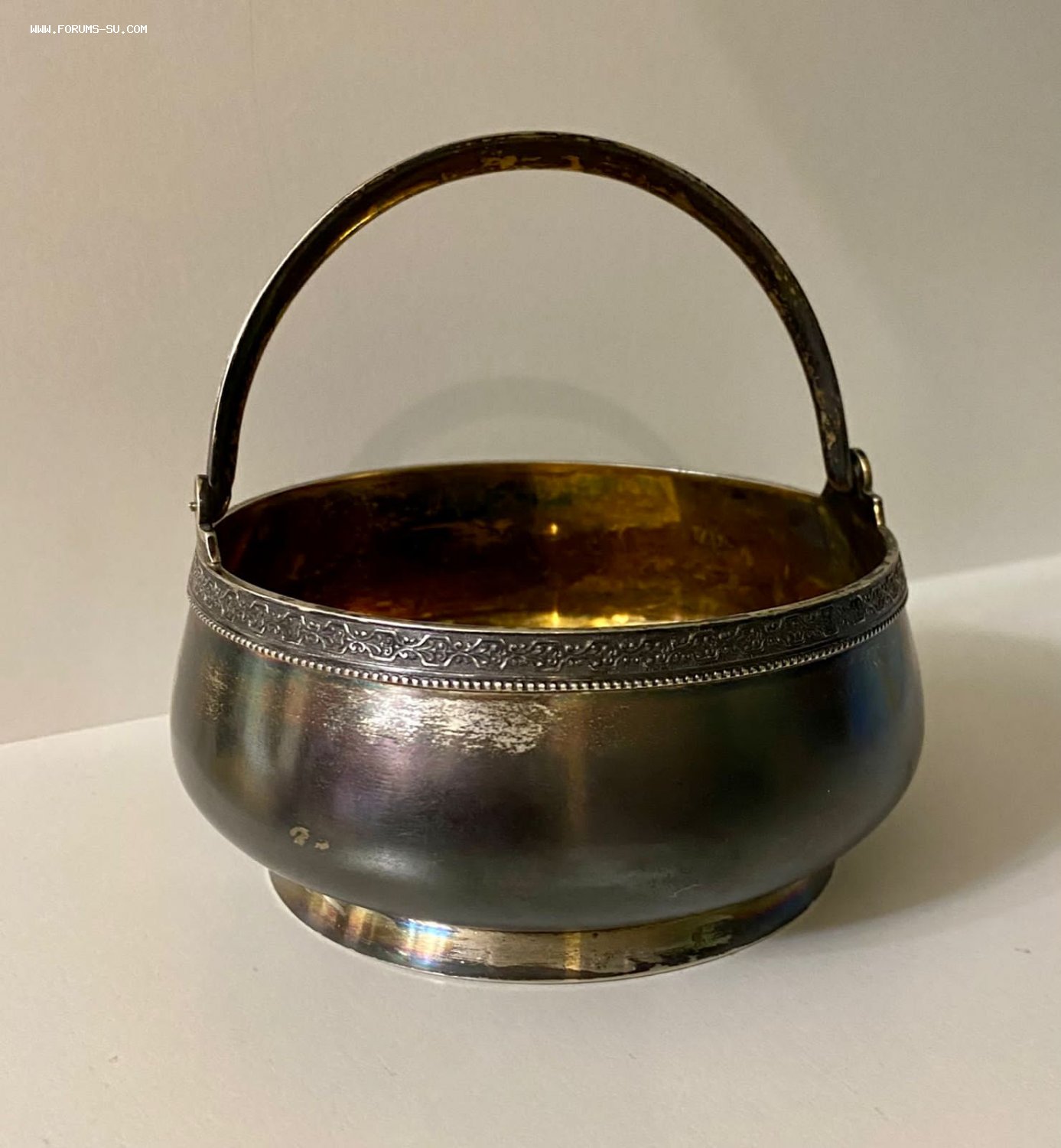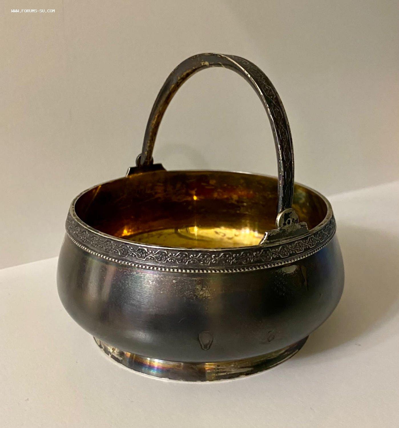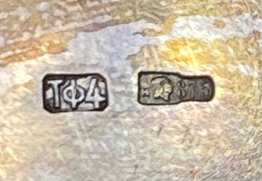 Серебряная сахарница. Серебро 875 пробы голова рабочего. Золочение. Вес - 193,25 грамм.