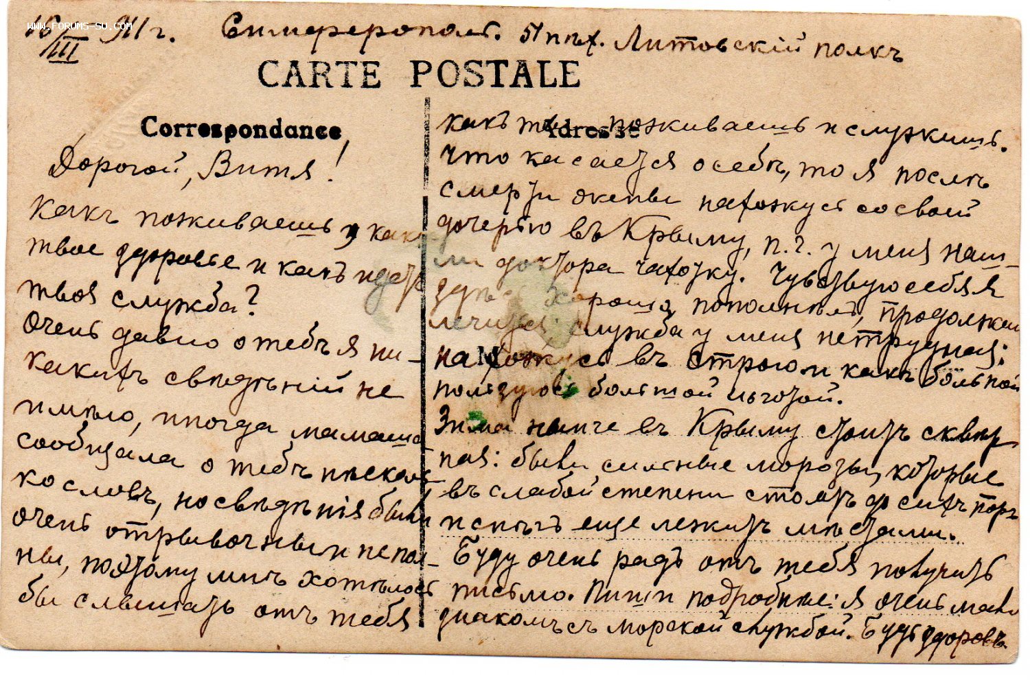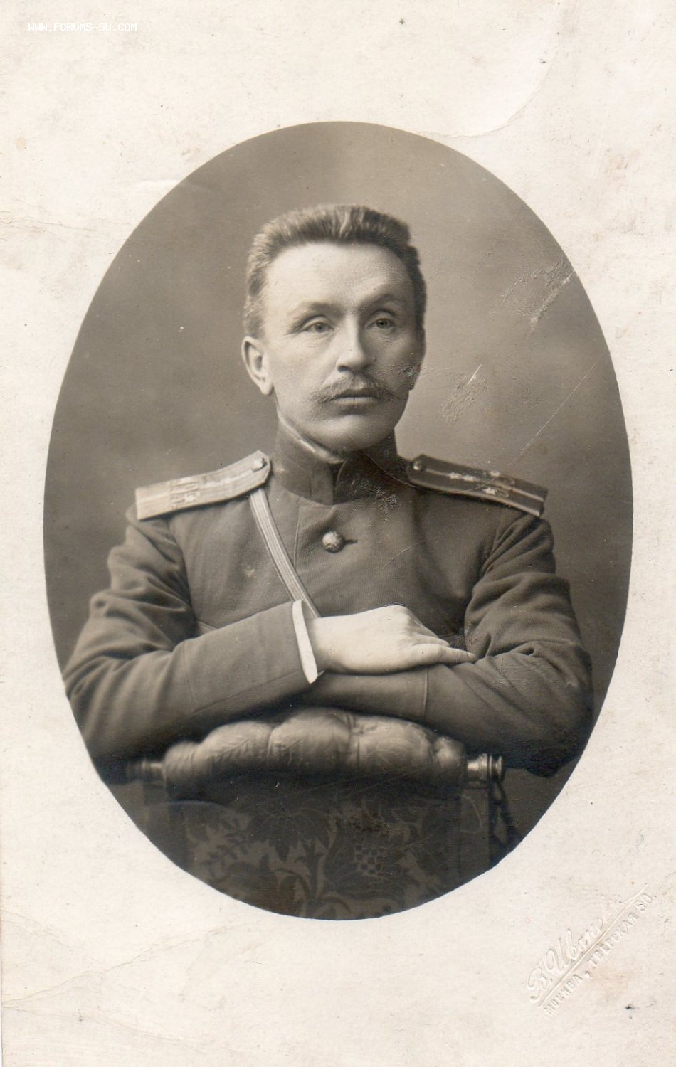 16.03.1911г. – Штабс-Капитан, младший офицер 195-го пехотного Оровайского полка, прикомандирован к 51-му пехотному Литовскому полку (на излечении от чахотки в г. Симферополь, Крым).