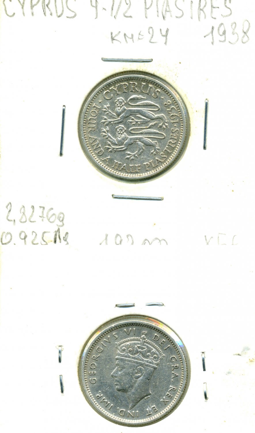 Кипр 4½ пиастра, 1938 2610alex - 06 ноя 2022 19:15.36 × Мини профиль пользователя 2610alex Сообщения: 5683 Зарегистрирован: 13 май 2005 08:36.46 Откуда: Архангельск Статус: Не в сети - 06 ноя 2022 19:15.36 #6655563 Блиц = 2000 руб + почта по РФ Фото Монеты и боны по разумным ценам