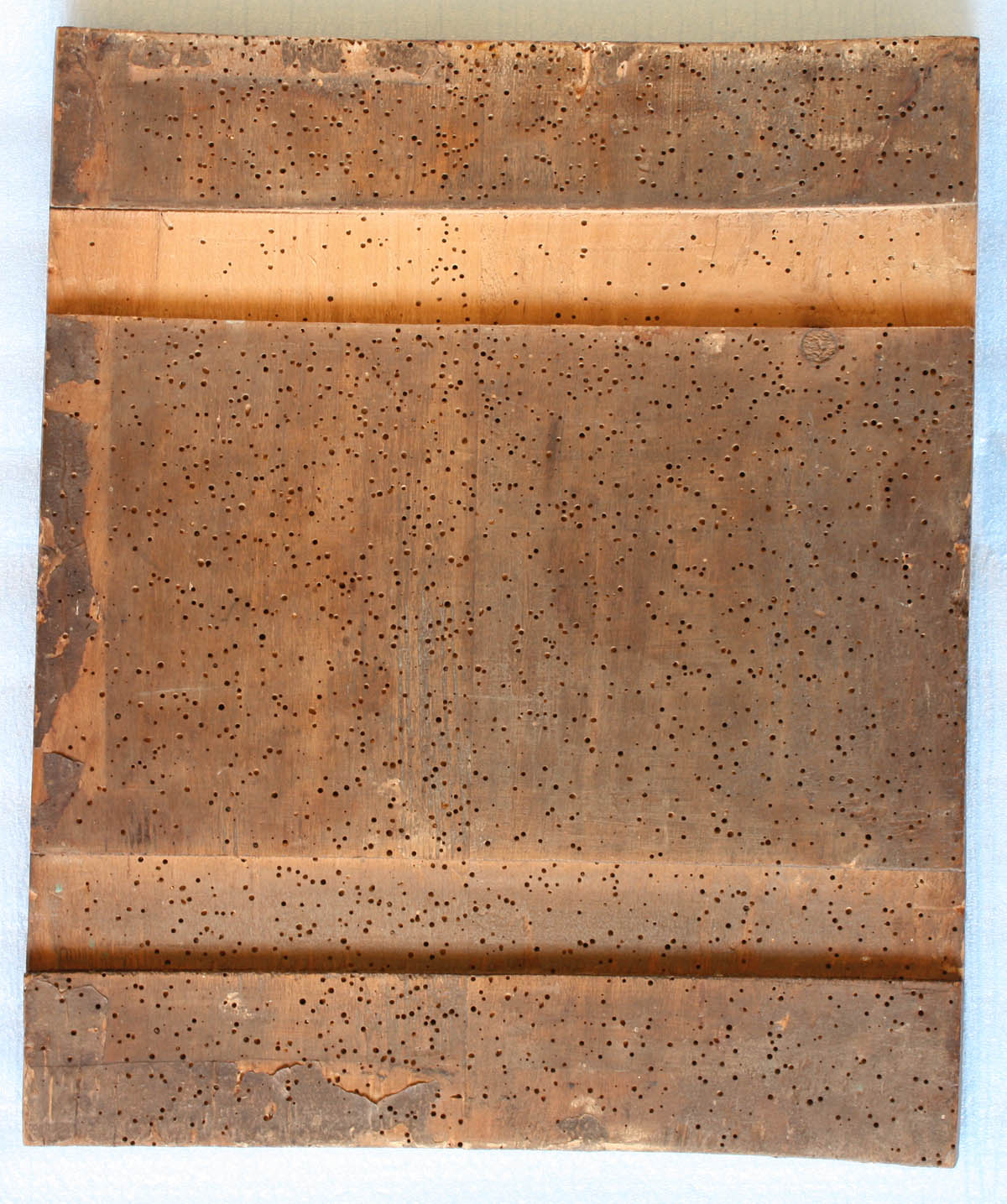 Жука нет ни одного, в смысле выведен или сам икону покинул, 7 лет стоит у меня, опилок нет, состояние не поменялось.