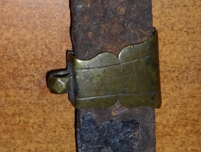 Предмет редкий и практически не встречаем .Этот собран из того что нашли + дополнили сгнившее..общяя 72см, клин 62см пята 26х8мм, общая в ножнах 72,7см..Предмет не мой , но я гарантирую честность сделки. Все части оригинальны и приведены в порядок , ножны кожа - новодел..Устье и наконечник новодел..Средняя гайка оригинальна. (на фото как нашли)