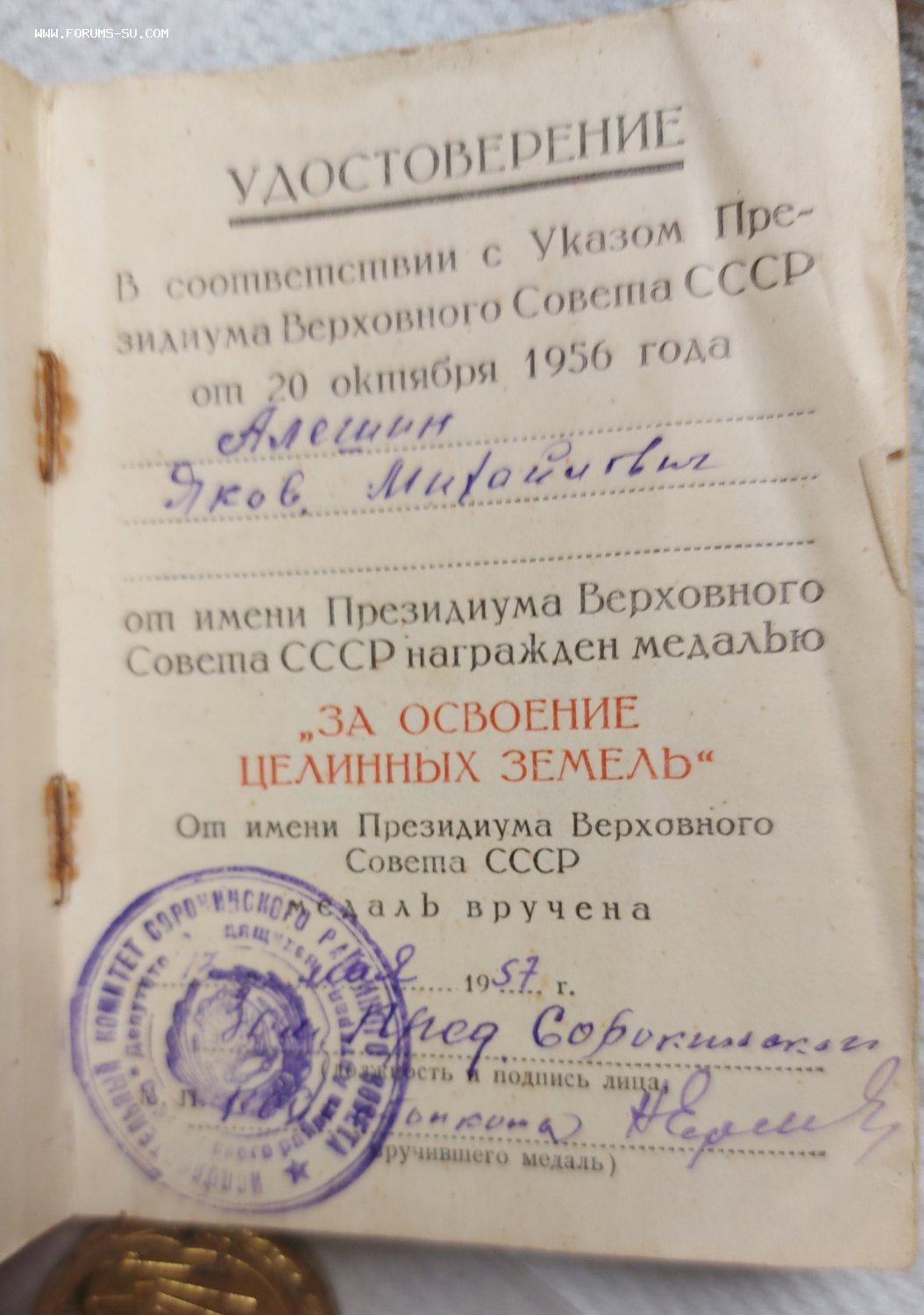 Бюджетный вариант. Состояние медали и документа удовлетворительное.