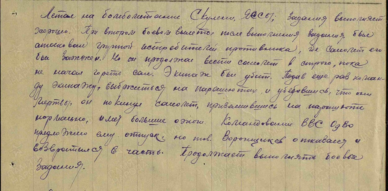 Выдан. Воронщиков Михаил Алексеевич. Приказ Южного фронта. от 05.11.41 г. Начало ВОВ.
