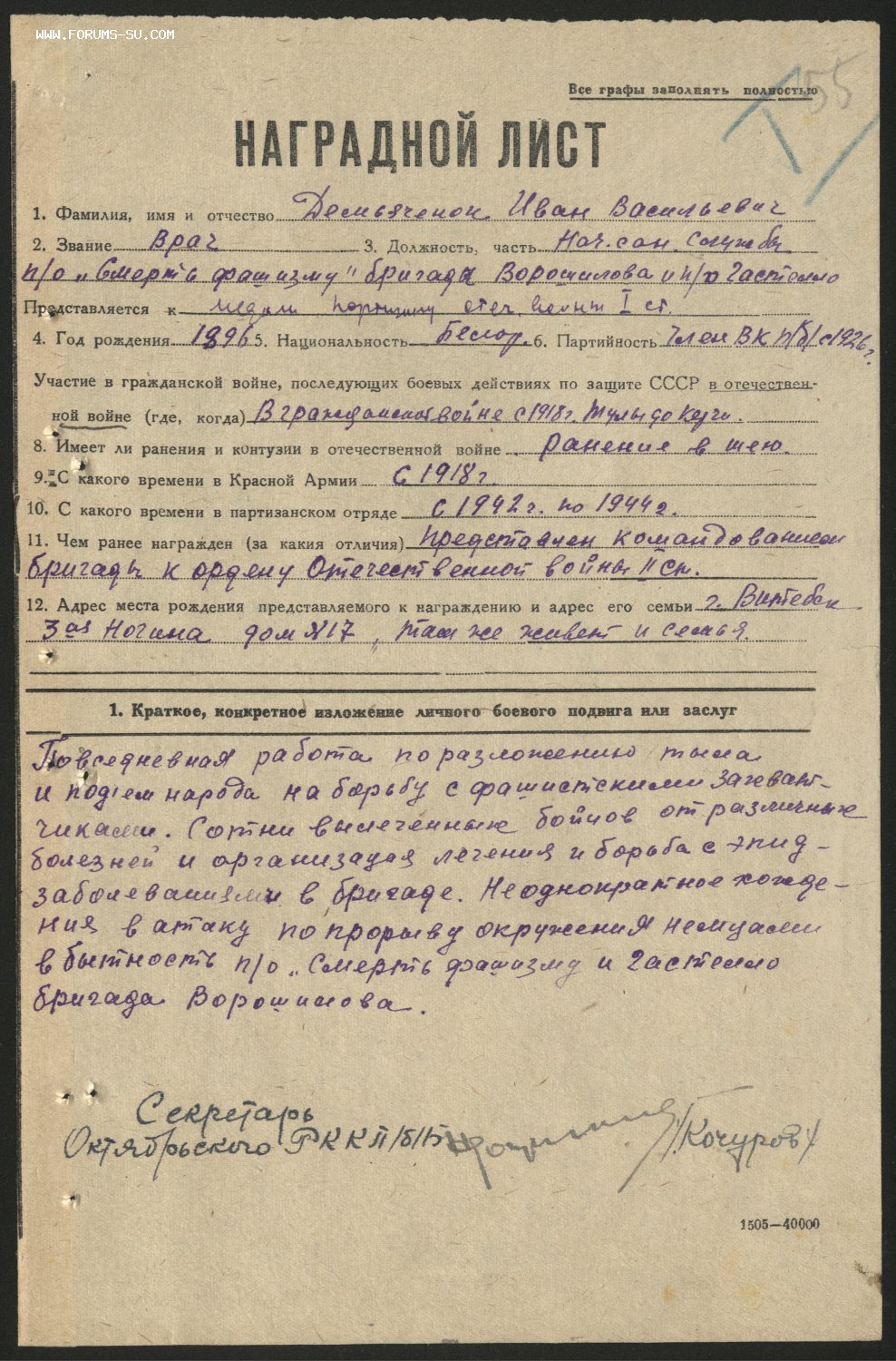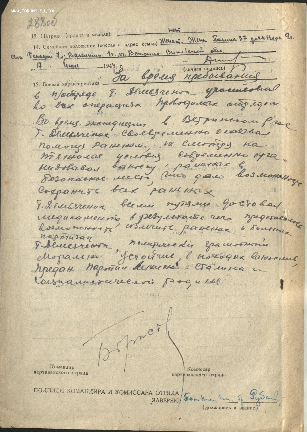 КЗ № 145 *** на командира партизанского отряда